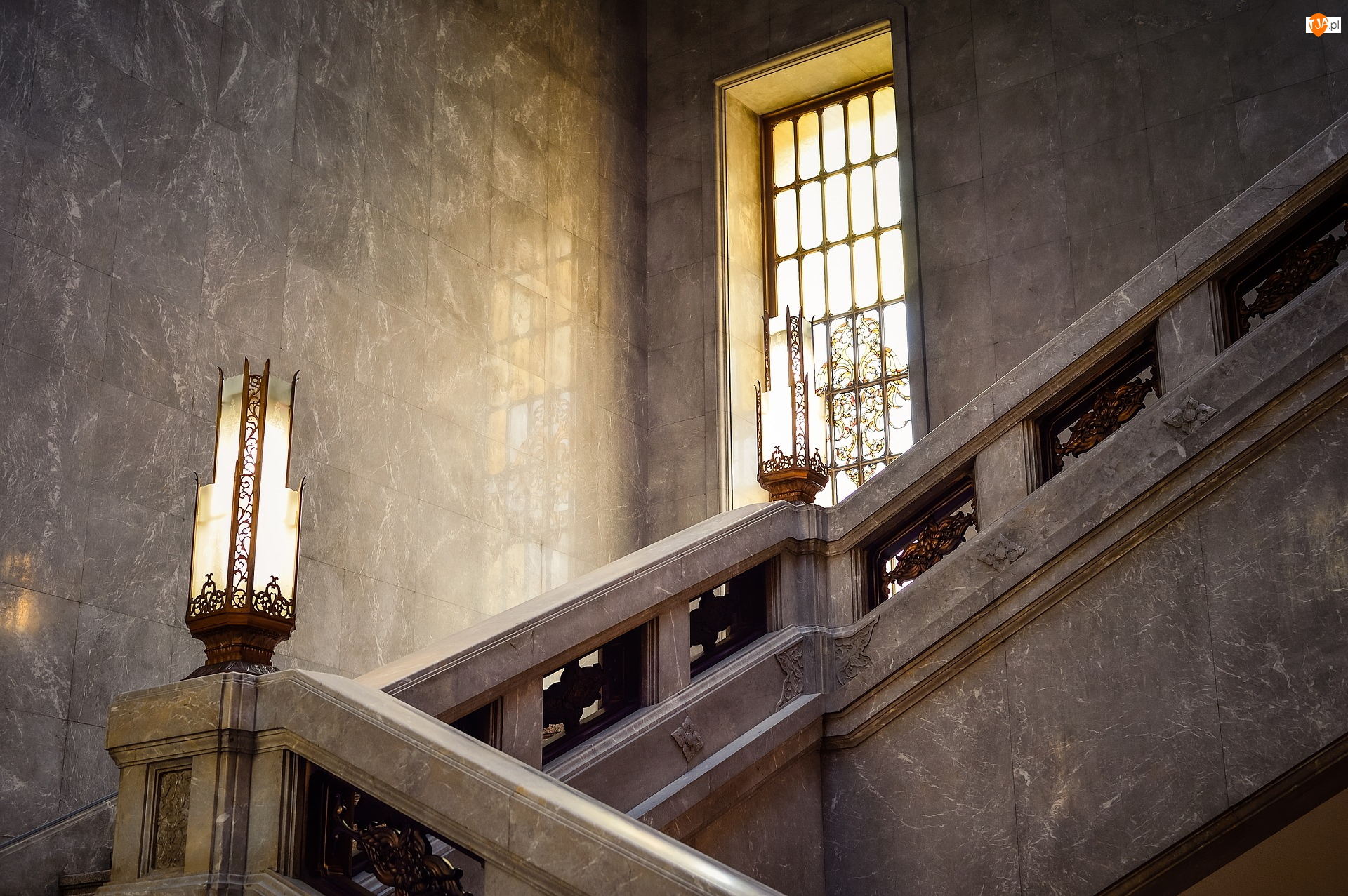 Balustrada, Wnętrze, Okno, Lampy, Schody, Ozdobne
