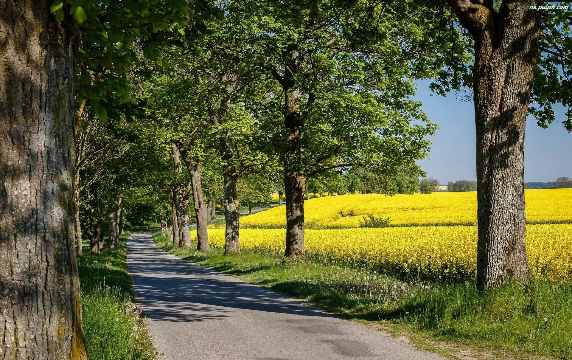 Rzepak, Droga, Drzewa, Pole