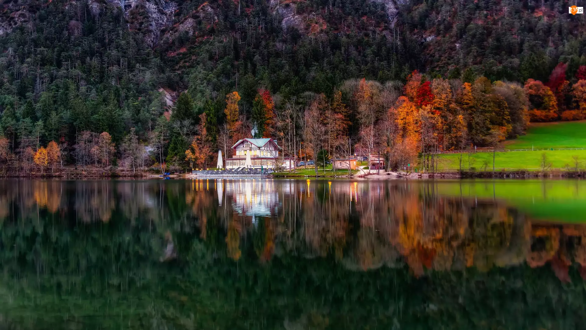 Dom, Jezioro, Jesień, Niemcy, Las, Bawaria