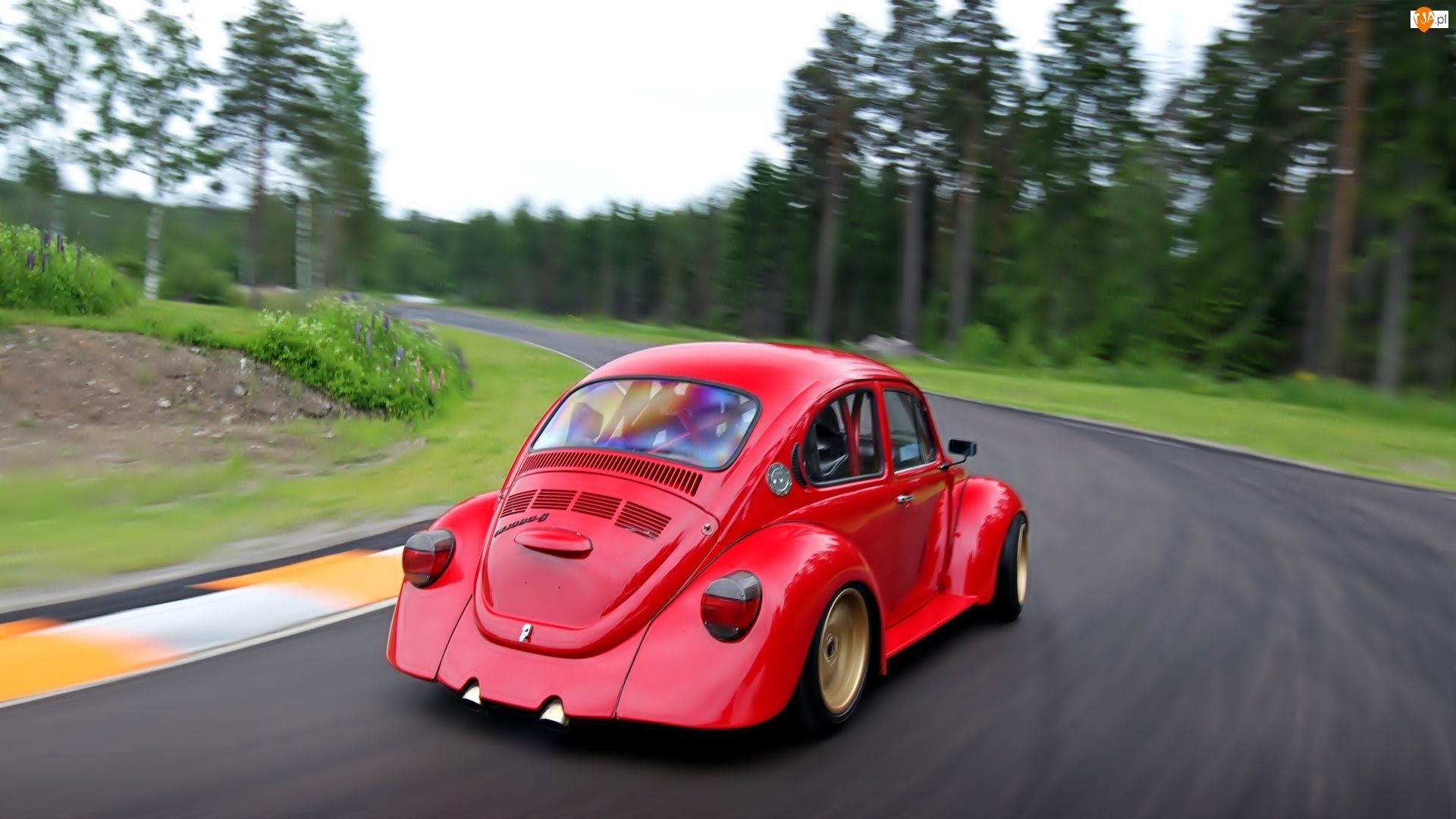 Las, Czerwony, Garbus, Volkswagen, Droga