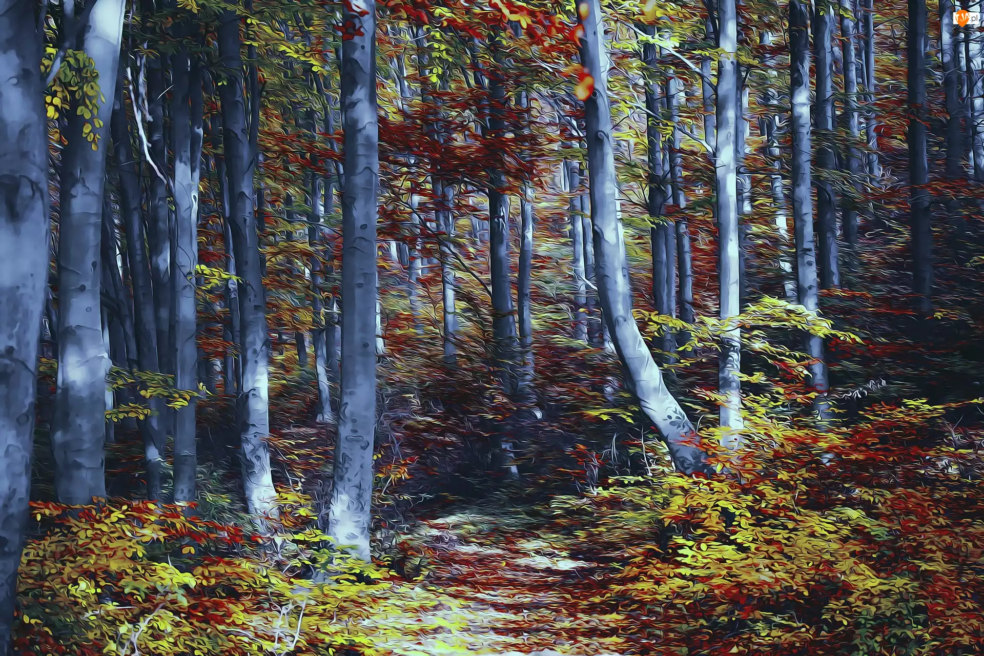 Grafika, Jesień, Las, Drzewa