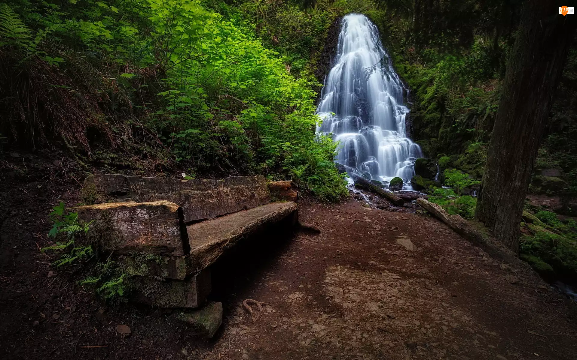 Las, Ławka, Wodospad, Ścieżka
