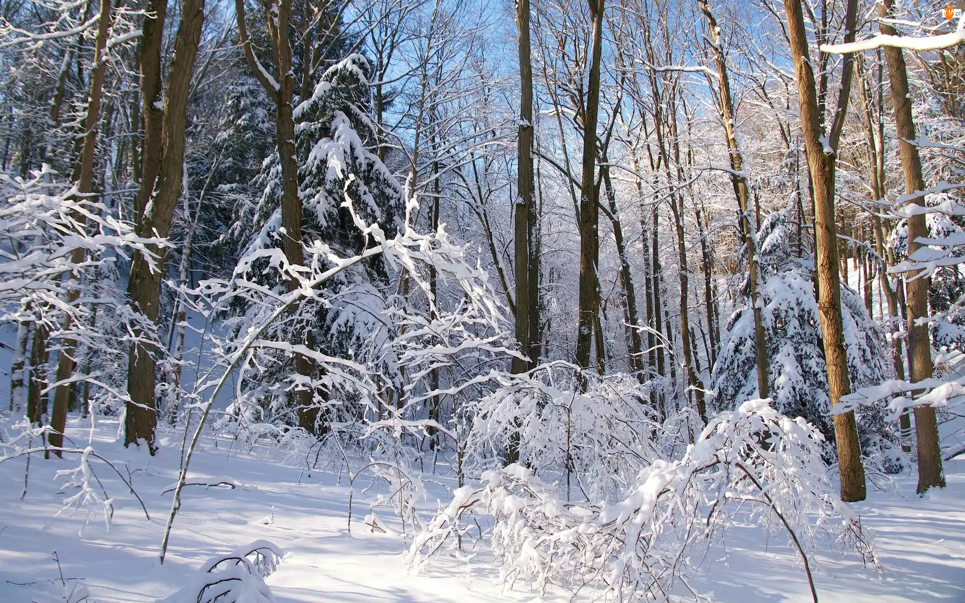 Las, Zima, Ośnieżone, Drzewa