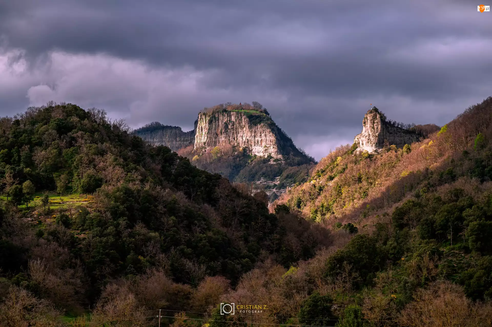 Lasy, Hiszpania, Góry, Sierra de Cabrera, Katalonia, Skały, Chmury, Półwysep Iberyjski