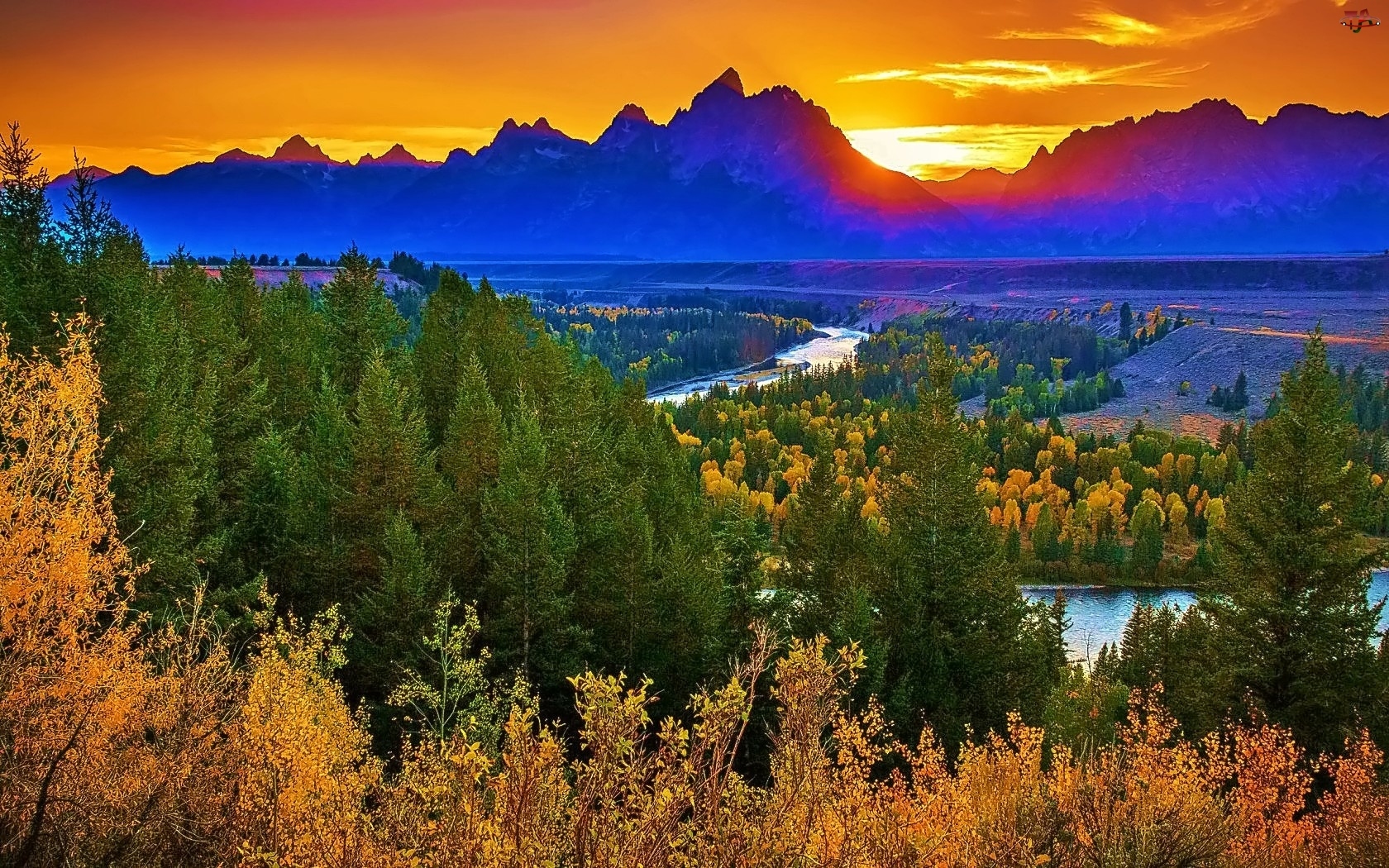 Lasy, Promienie, Góry, Słońca, Rzeka