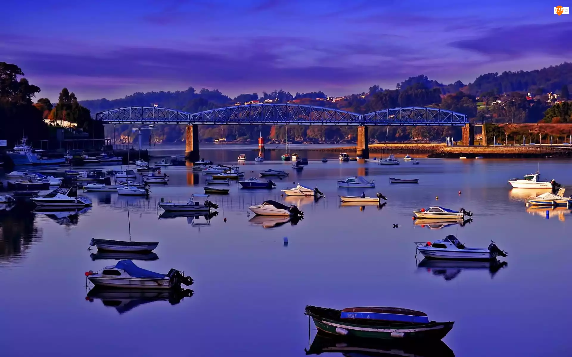 Lasy, Rzeka, Łodzie, Most, Motorówki
