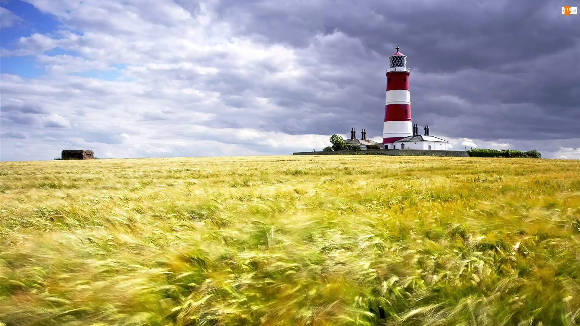 Latarnia, Lato, Niebo, Łąka, Chmury
