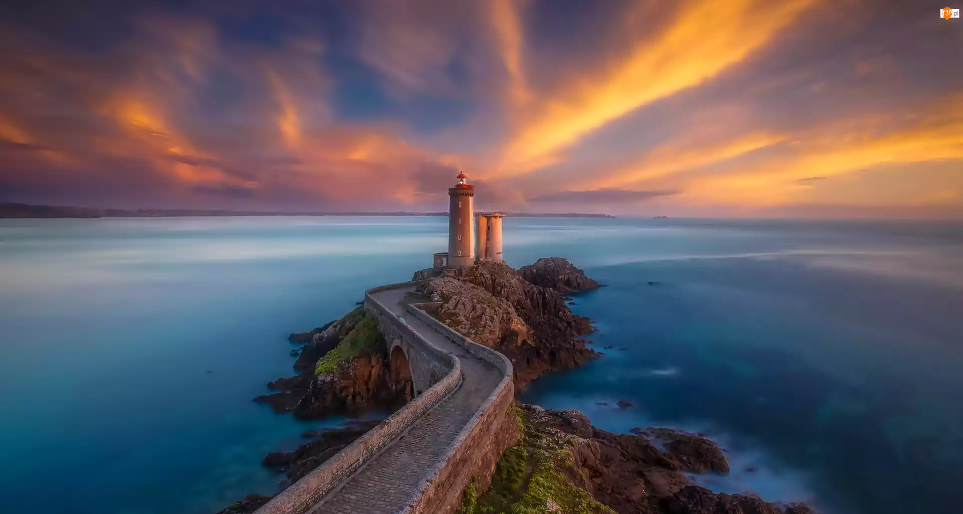 Morze, Droga, Francja, Latarnia morska Phare du Petit Minou, Bretania, Gmina Plouzane, Most