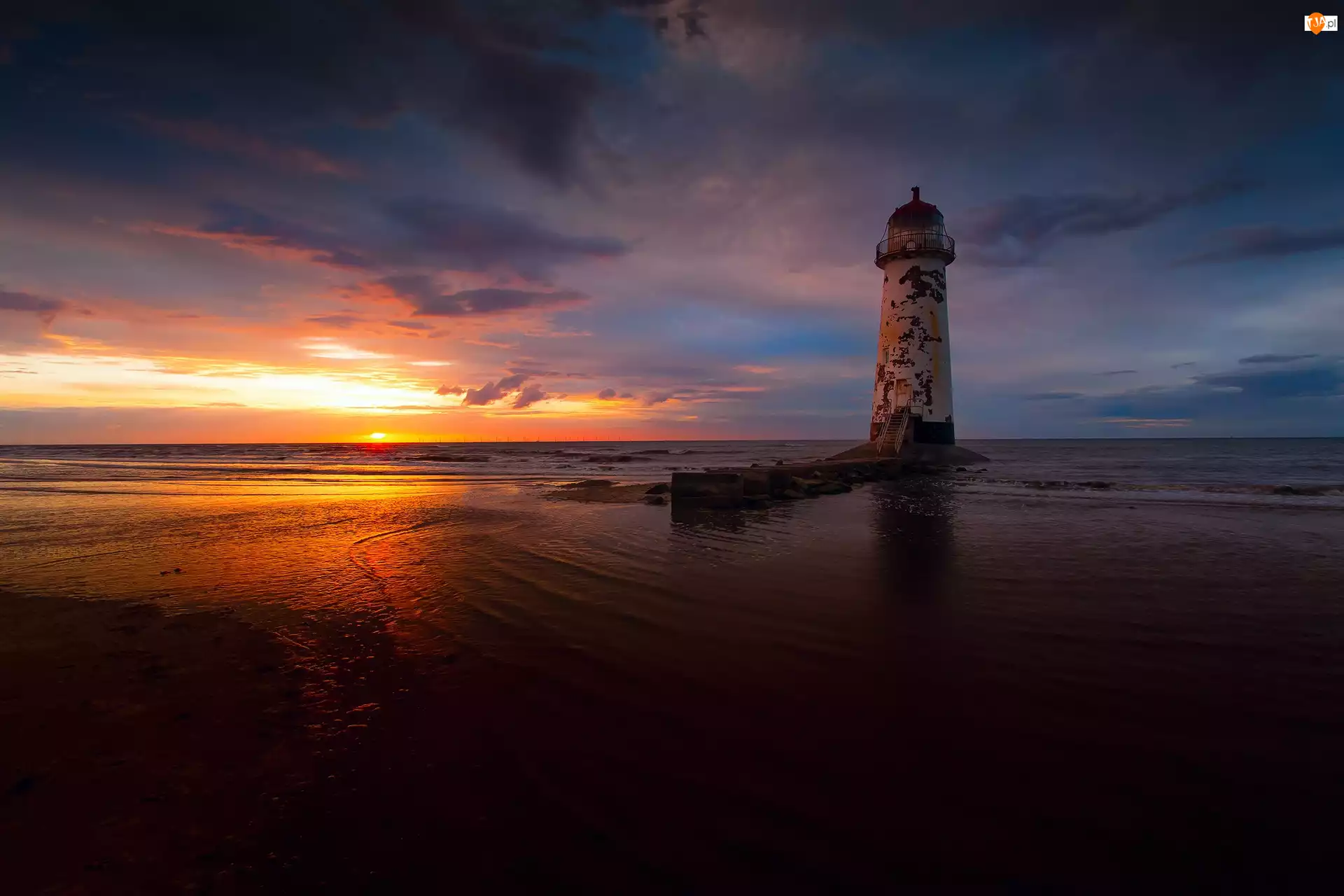 Latarnia Morska, Zachód słońca, Morze, Chmury