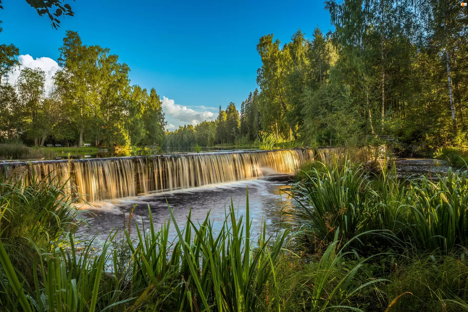 Lato, Rzeka, Drzewa, Kaskada, Zarośla