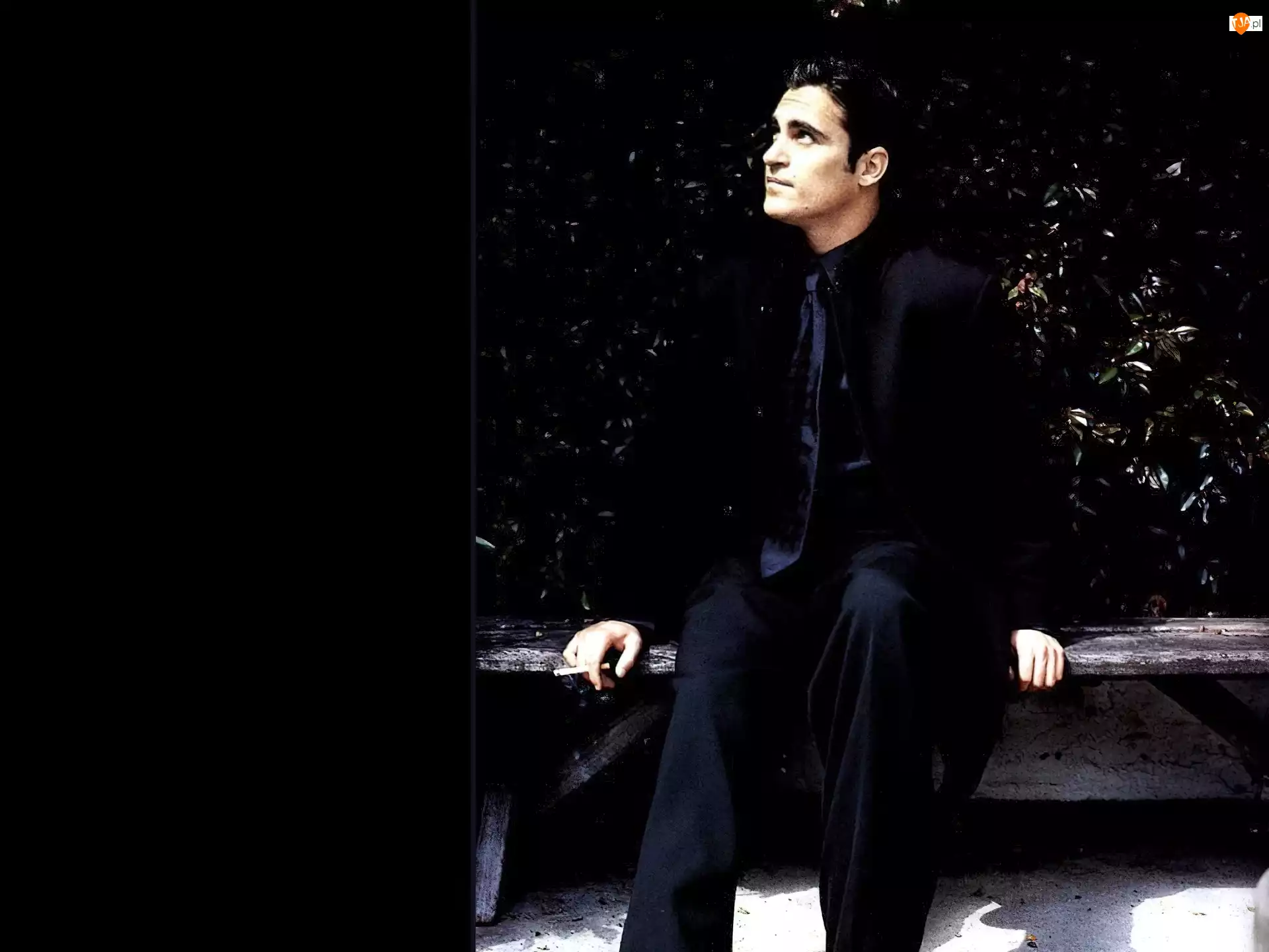 ławka, Joaquin Phoenix, czarny strój
