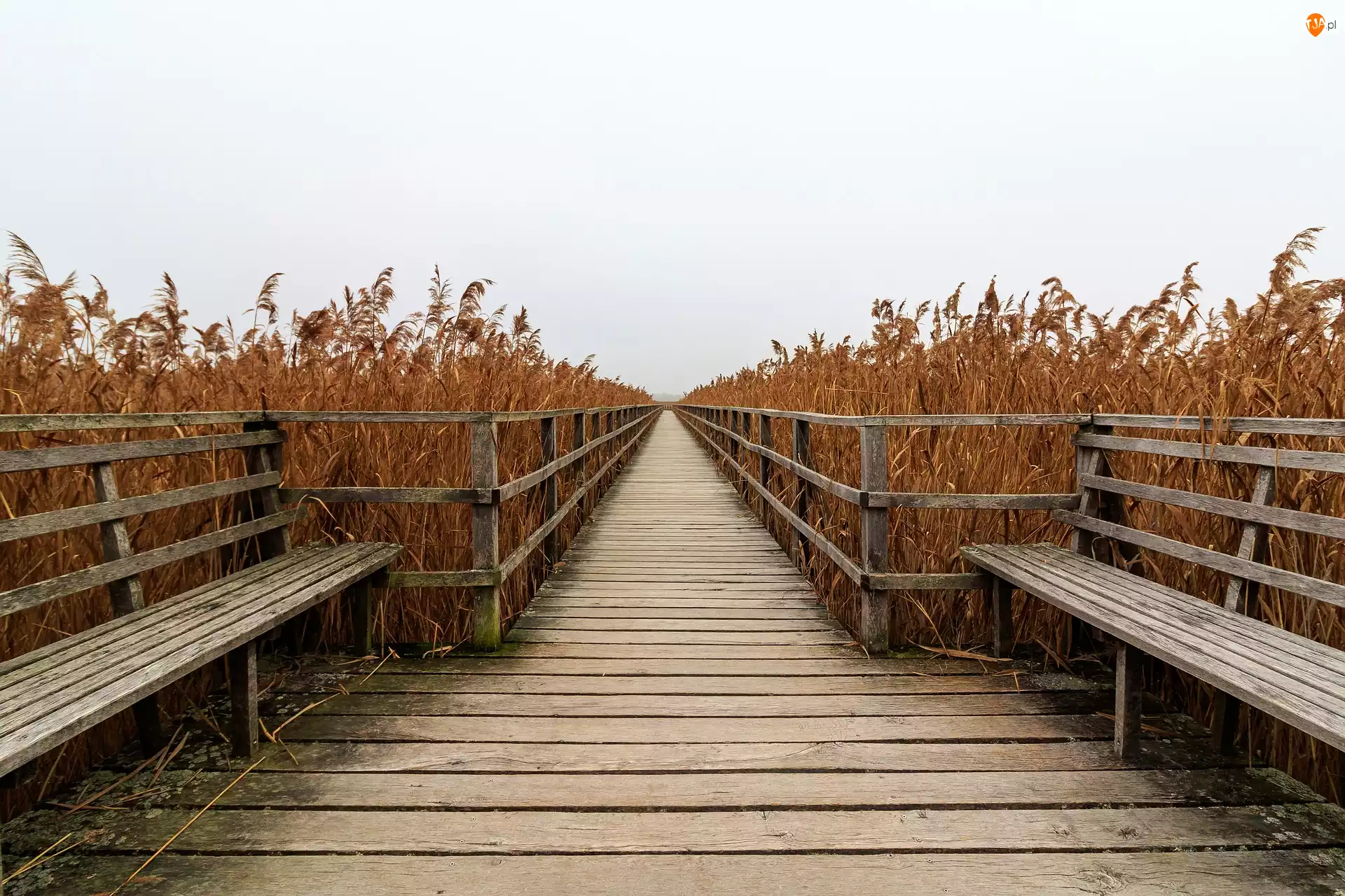 Pożółkłe, Trzciny, Ławki, Pomost, Trawy