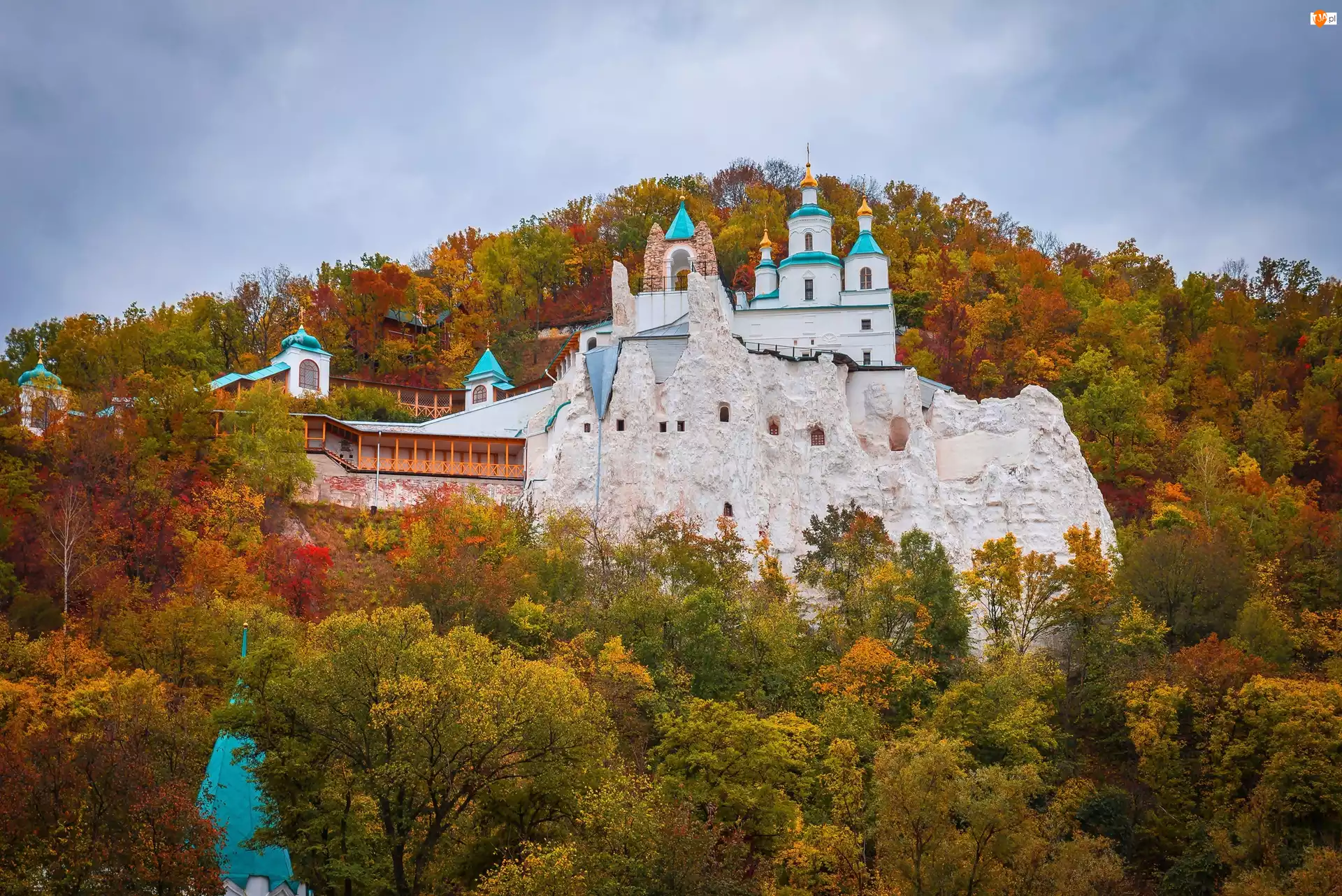 Jesień, Ukraina, Klasztor, Ławra Świętogórska, Lasy