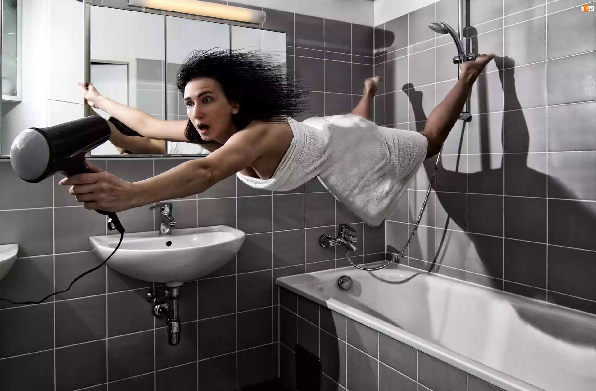 Łazienka, Kobieta, Suszarka