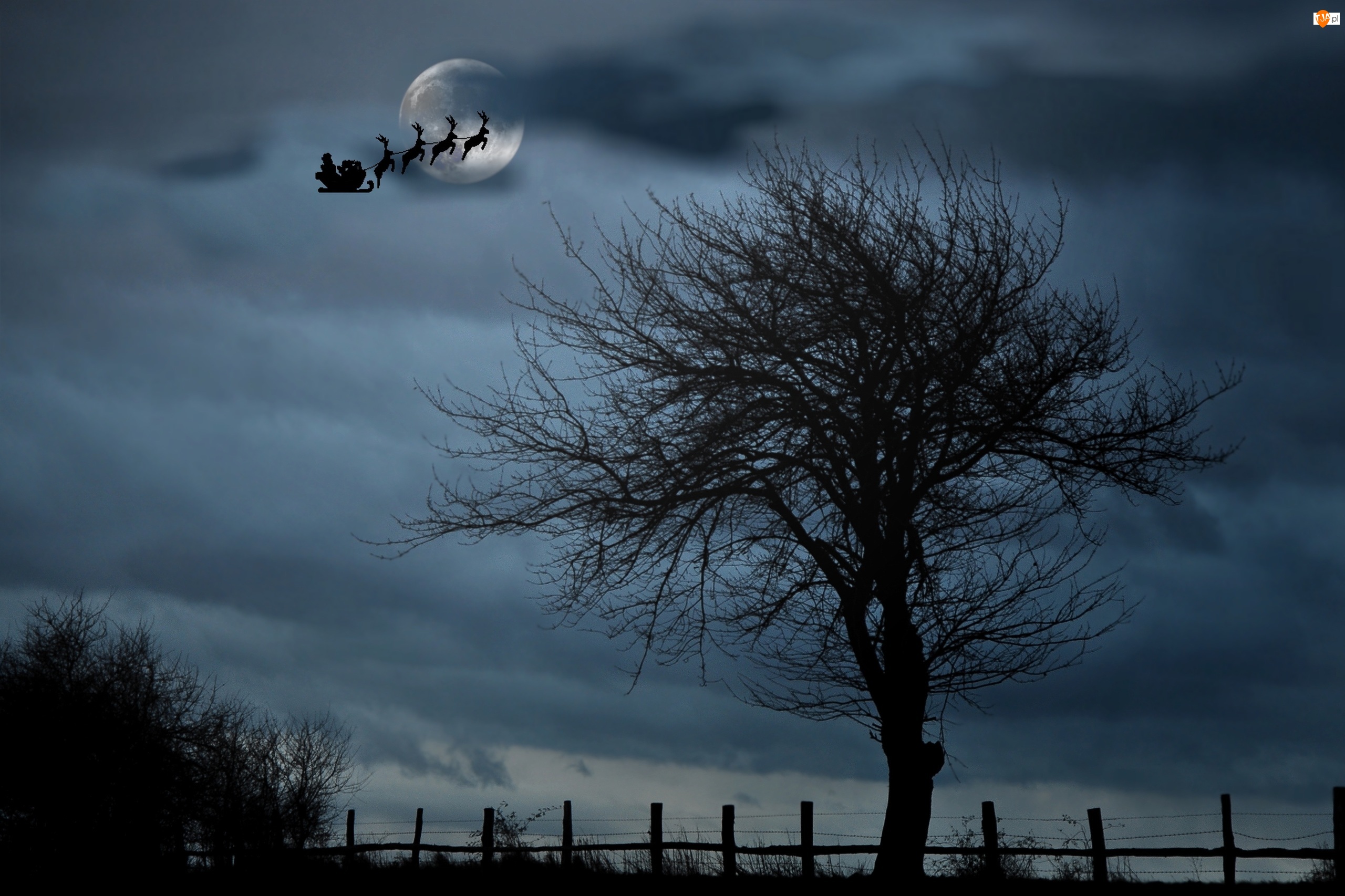 Boże, Zima, Mikołaj, Drzewo, Sanie, Narodzenie