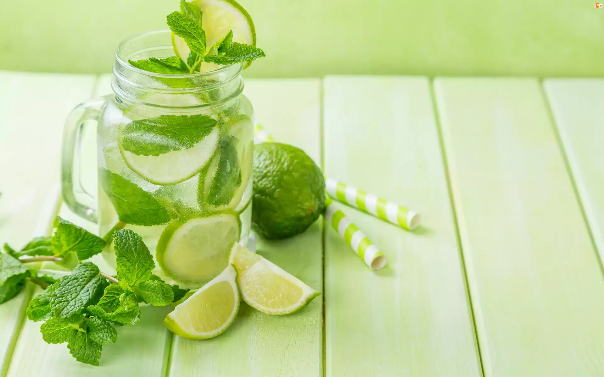 Lemoniada, Owoce, Deski, Napój, Mięta, Rurki, Limonki