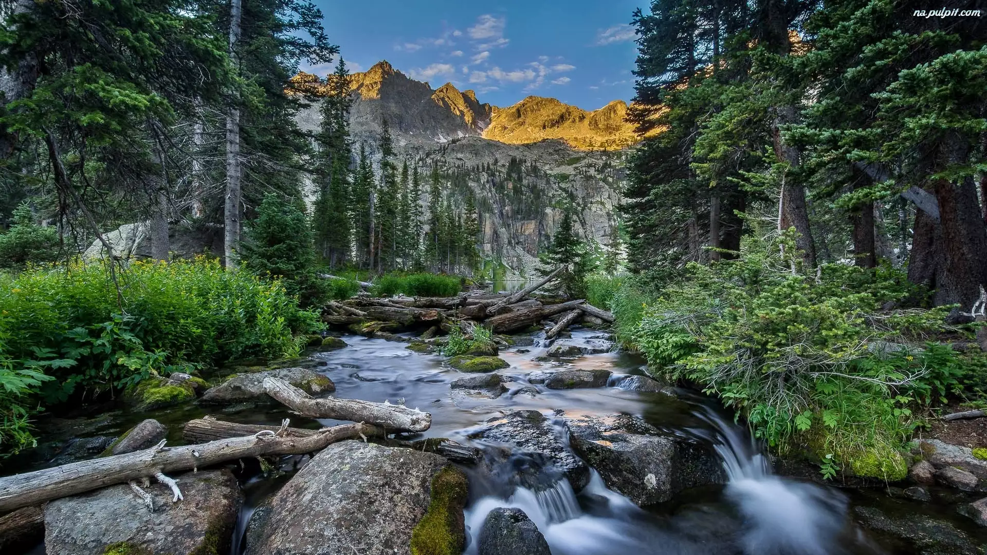 Las, Stany Zjednoczone, Góry, Rzeczka, Stan Kolorado, Drzewa, Kamienie, Indian Peaks Wilderness