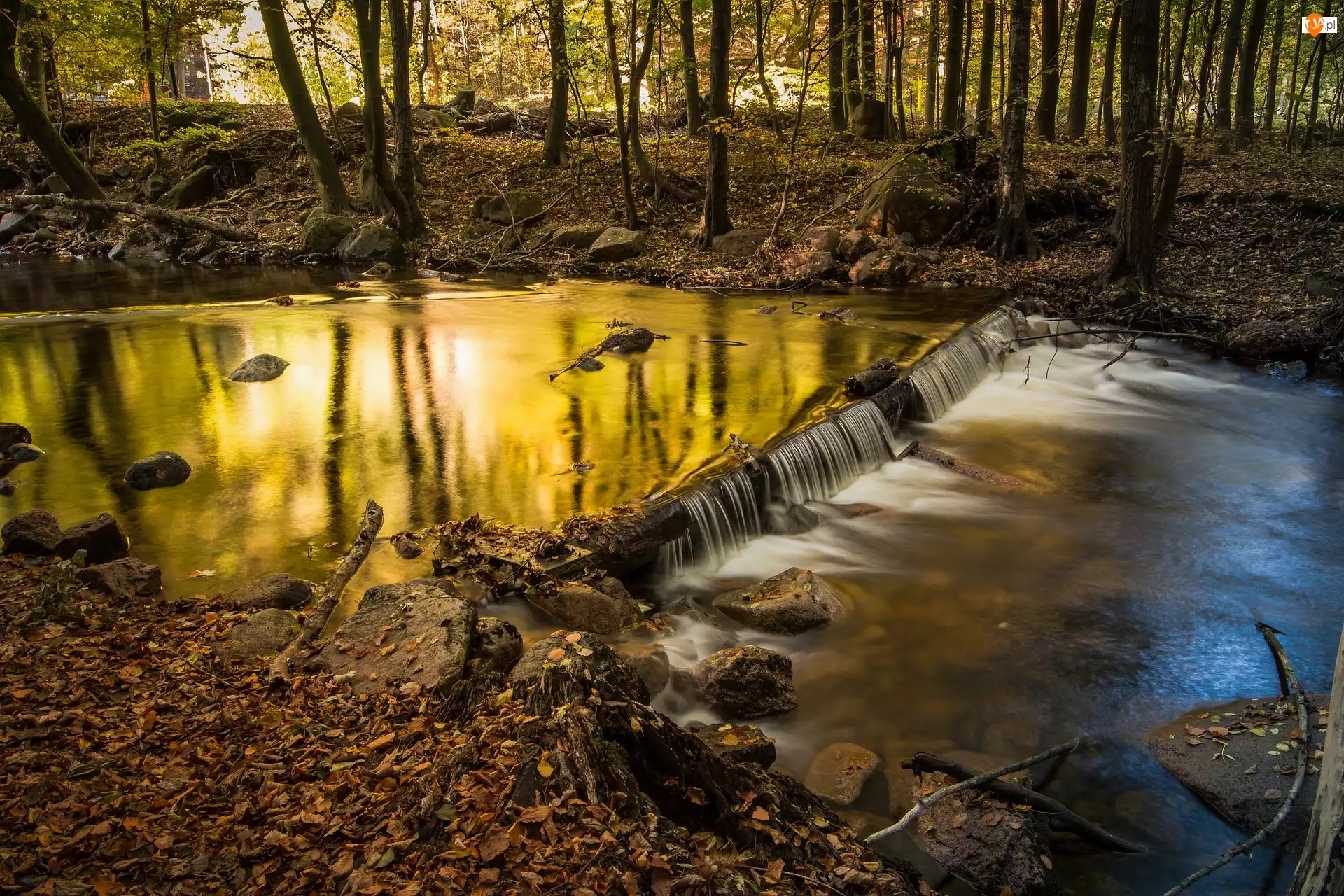 Las, Niemcy, Rzeka Ilse, Drzewa, Saksonia-Anhalt, Jesień, Kamienie, Powiat Harz