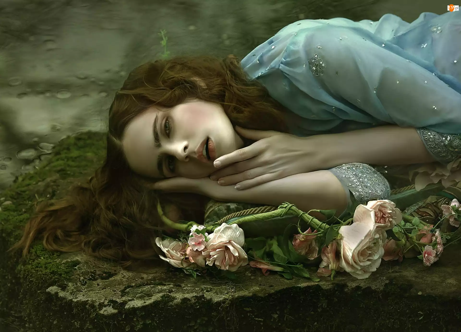 Leżąca, Kamień, Kobieta, Róże