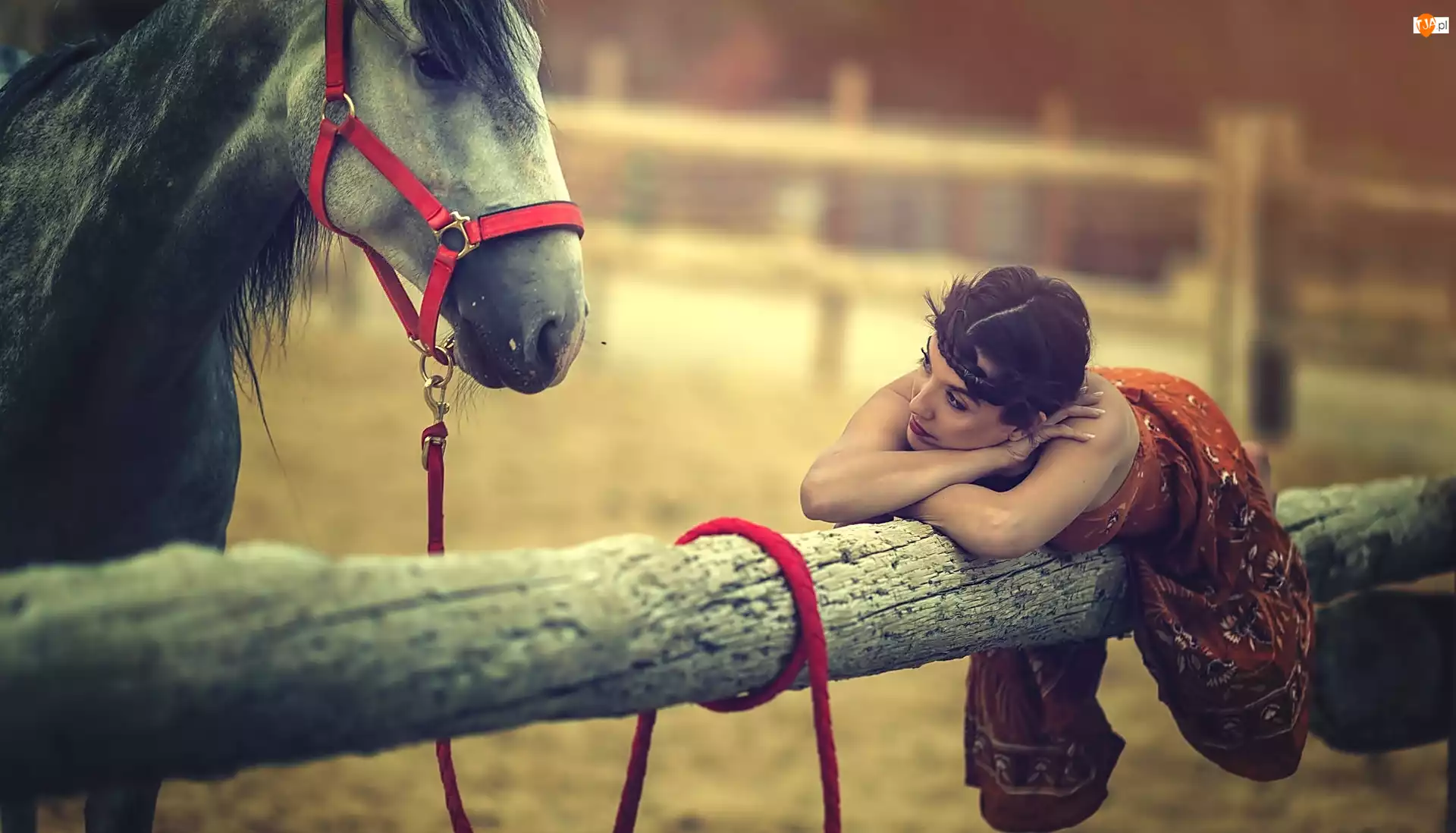 Leżąca, Kon, Kobieta, Ogrodzenie