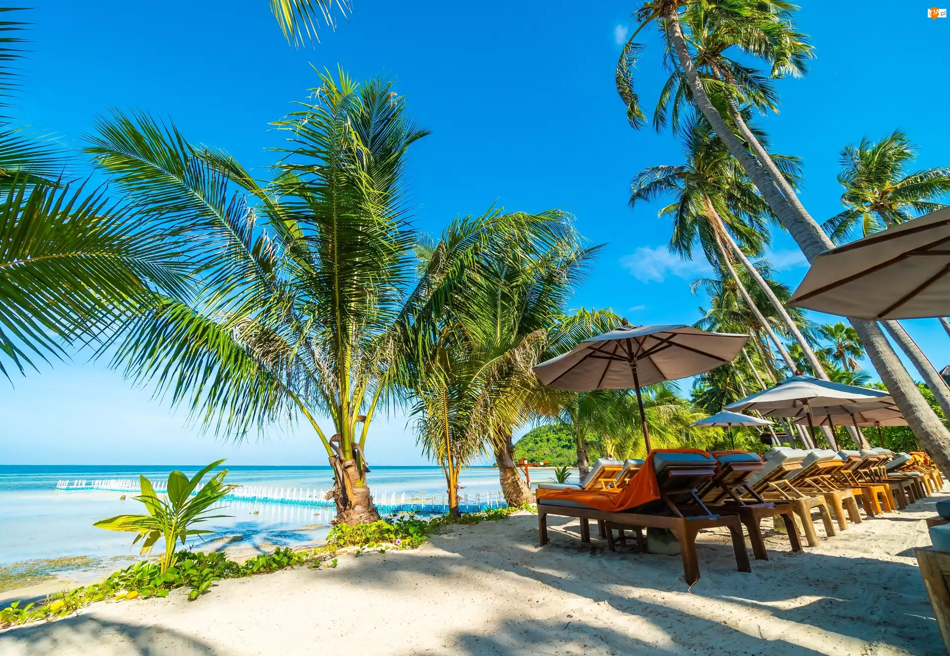 Wakacje, Morze, Palmy, Leżaki
