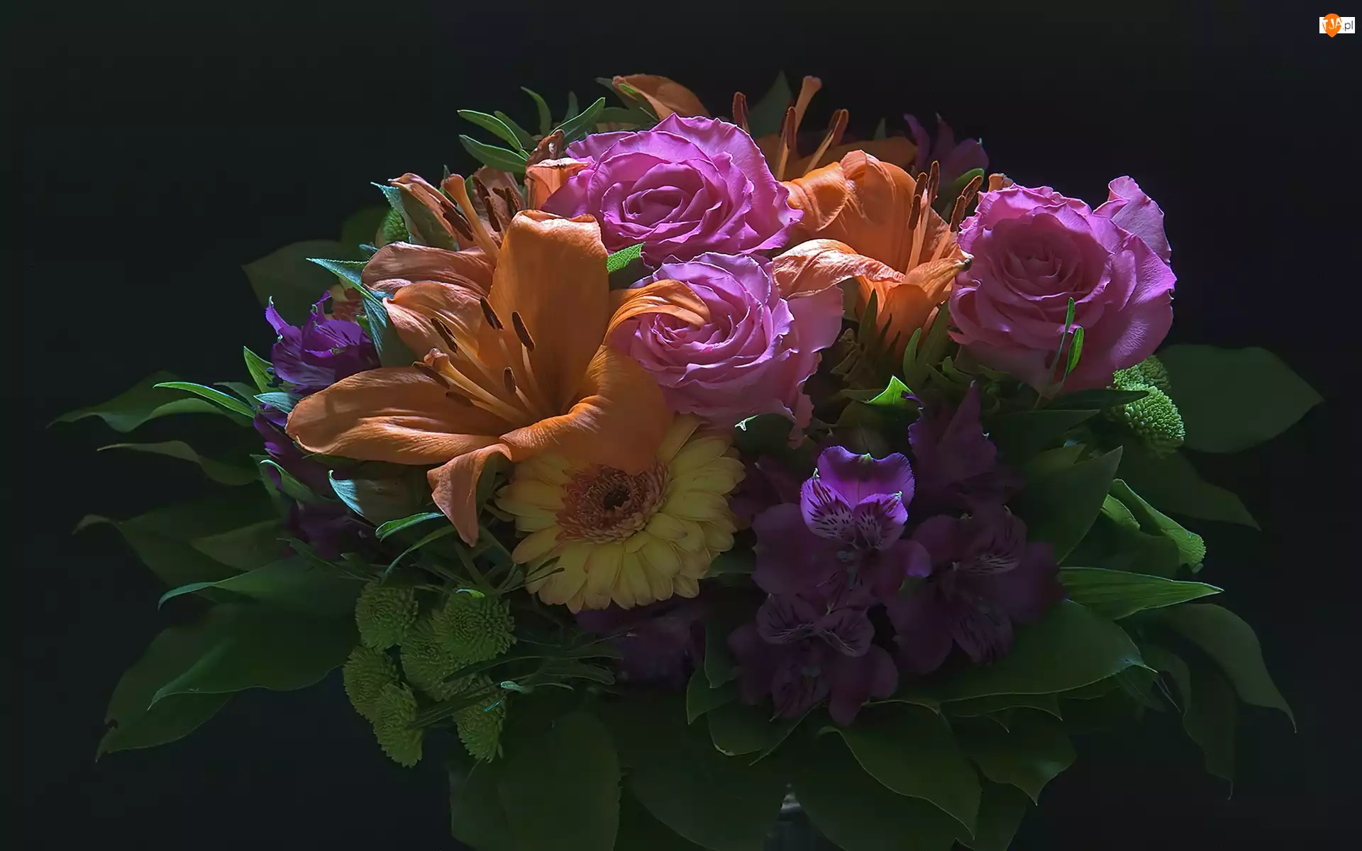 Lilie, Bukiet, Gerbera, Kwiaty, Róże