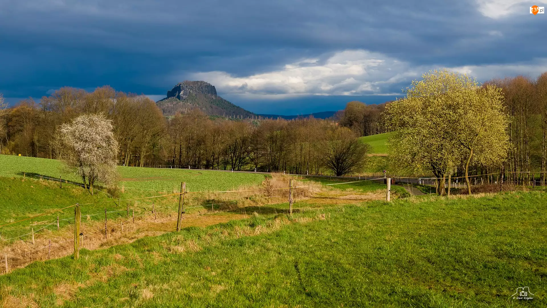 Lilienstein, Drzewa, Niemcy, Góry, Saksonia, Ogrodzenie, Łąka
