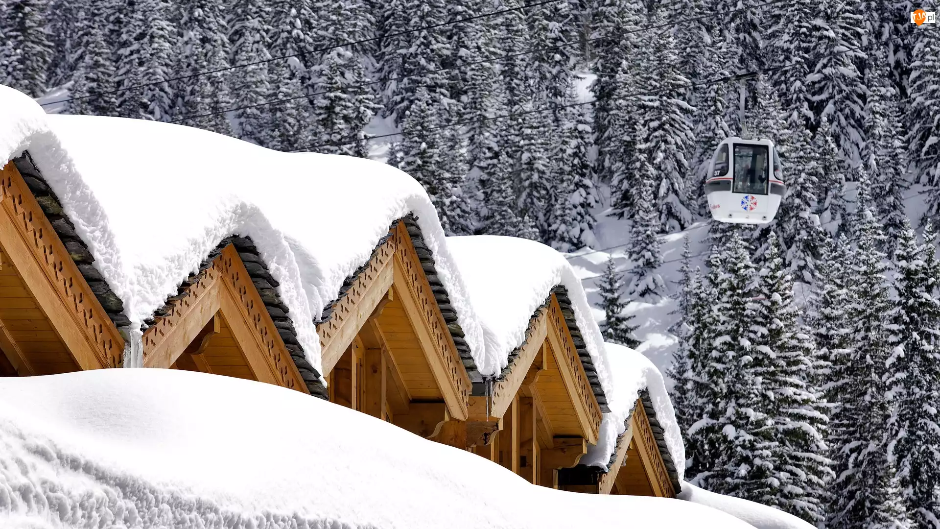 Linowa, Zima, Dachy, Zaśnieżone, Kolejka
