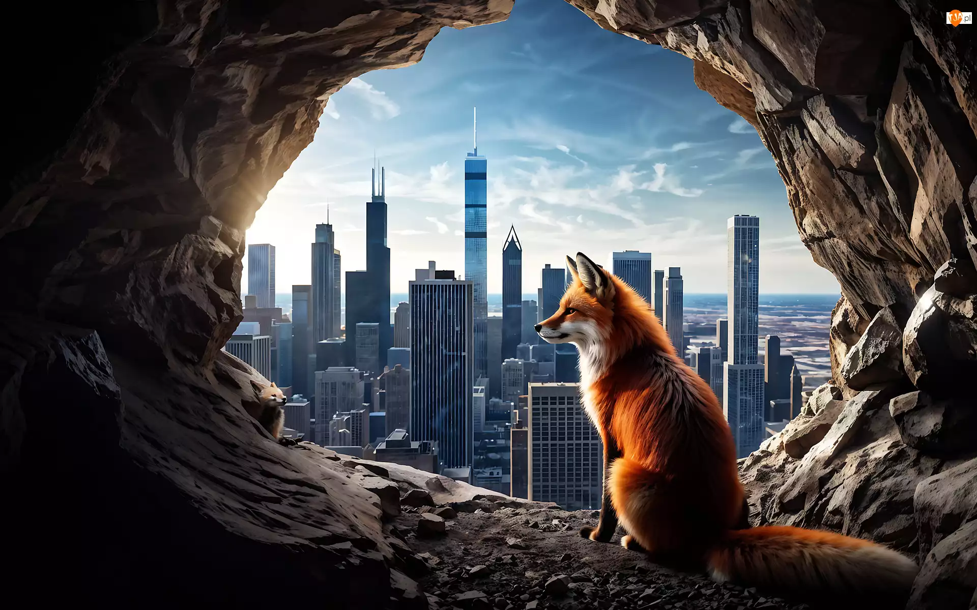 Lis, Domy, Jaskinia, Grafika, Wieżowce