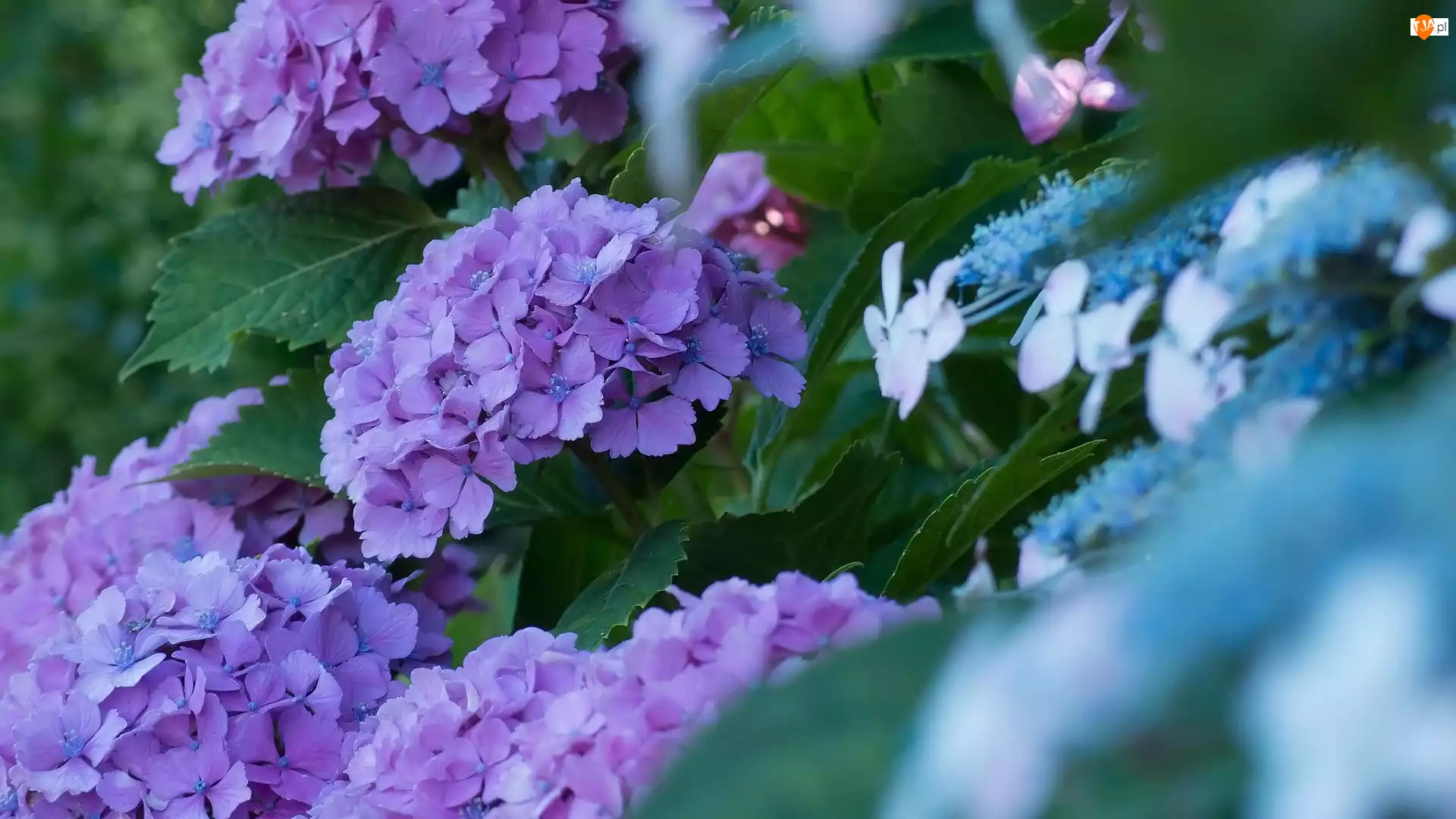Liście, Fioletowe, Hortensje