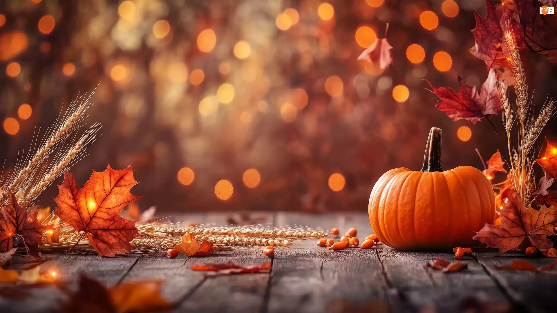 Liście, Grafika AI, Deski, Dynia, Kłosy