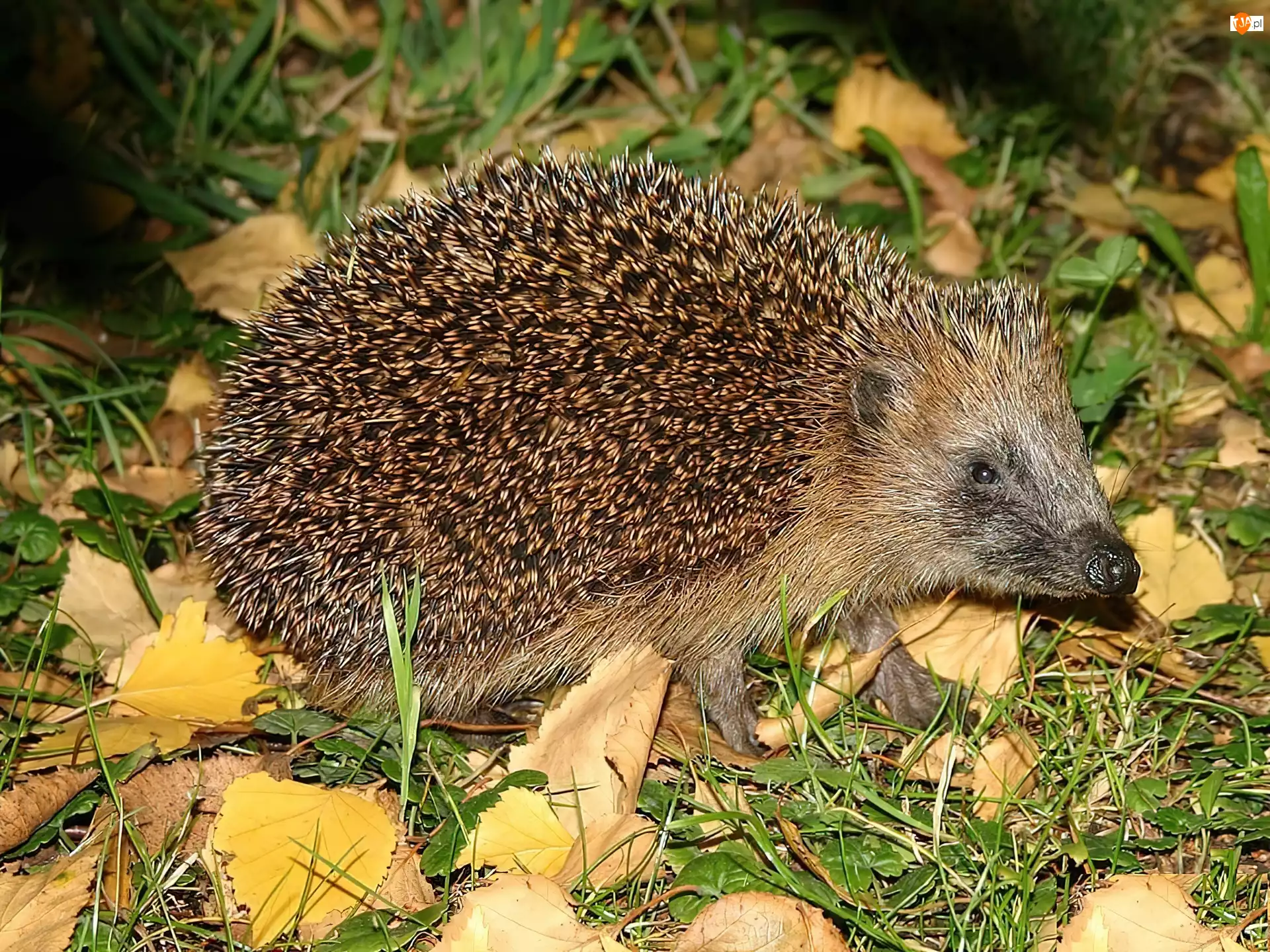 Liście, Jeż, Trawa