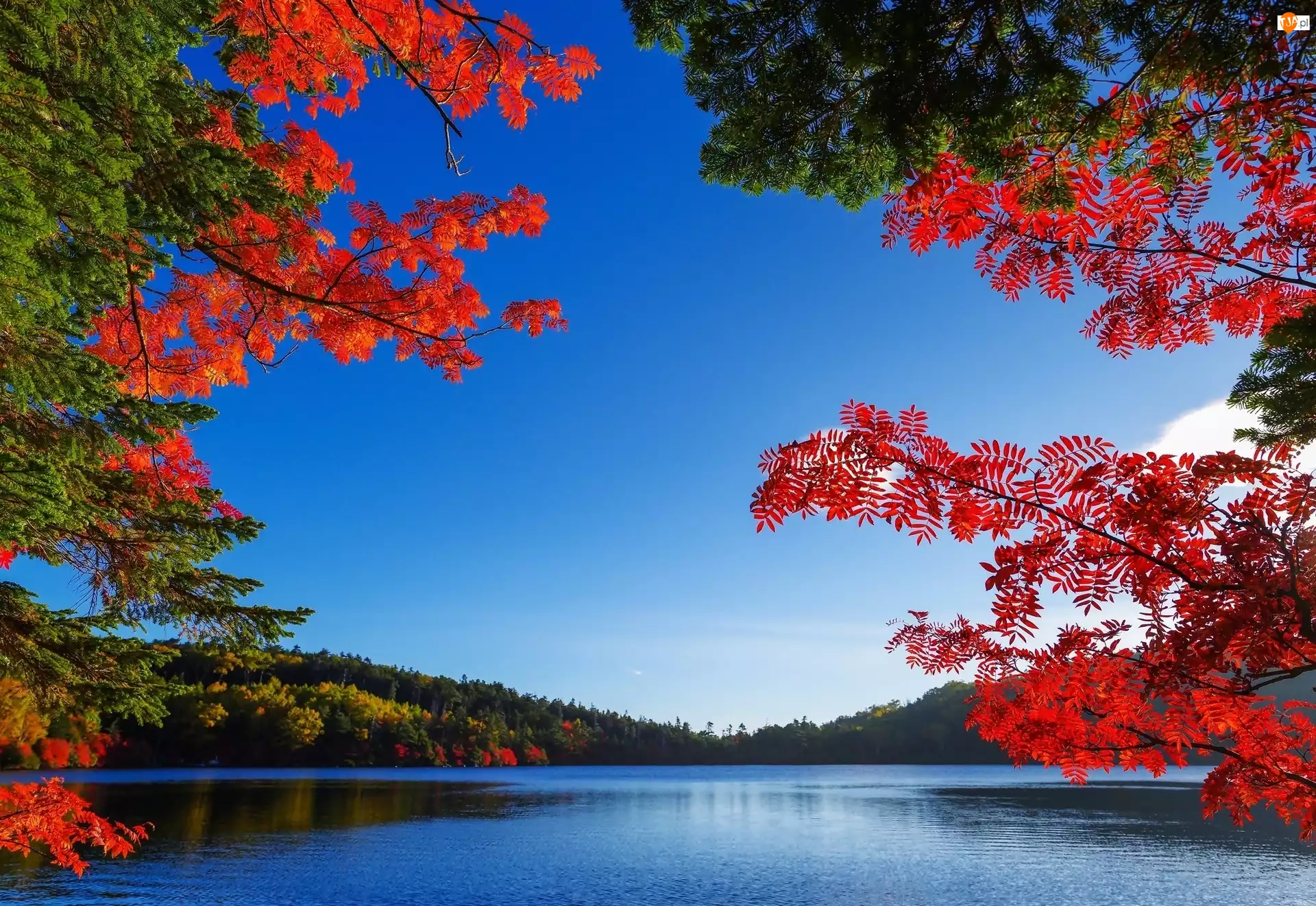 Liście, Jezioro, Gałęzie, Drzewa, Kolorowe