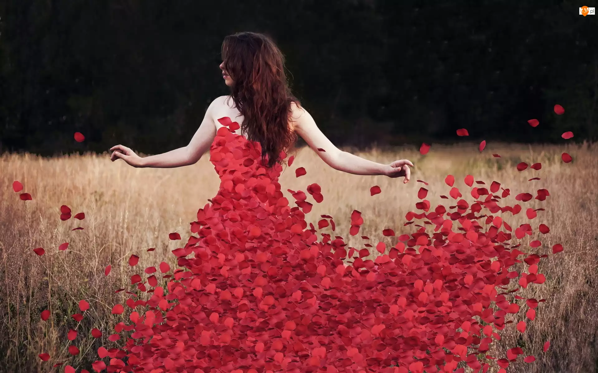 Liście, Kobieta, Trawa, Łąka, Jesienne