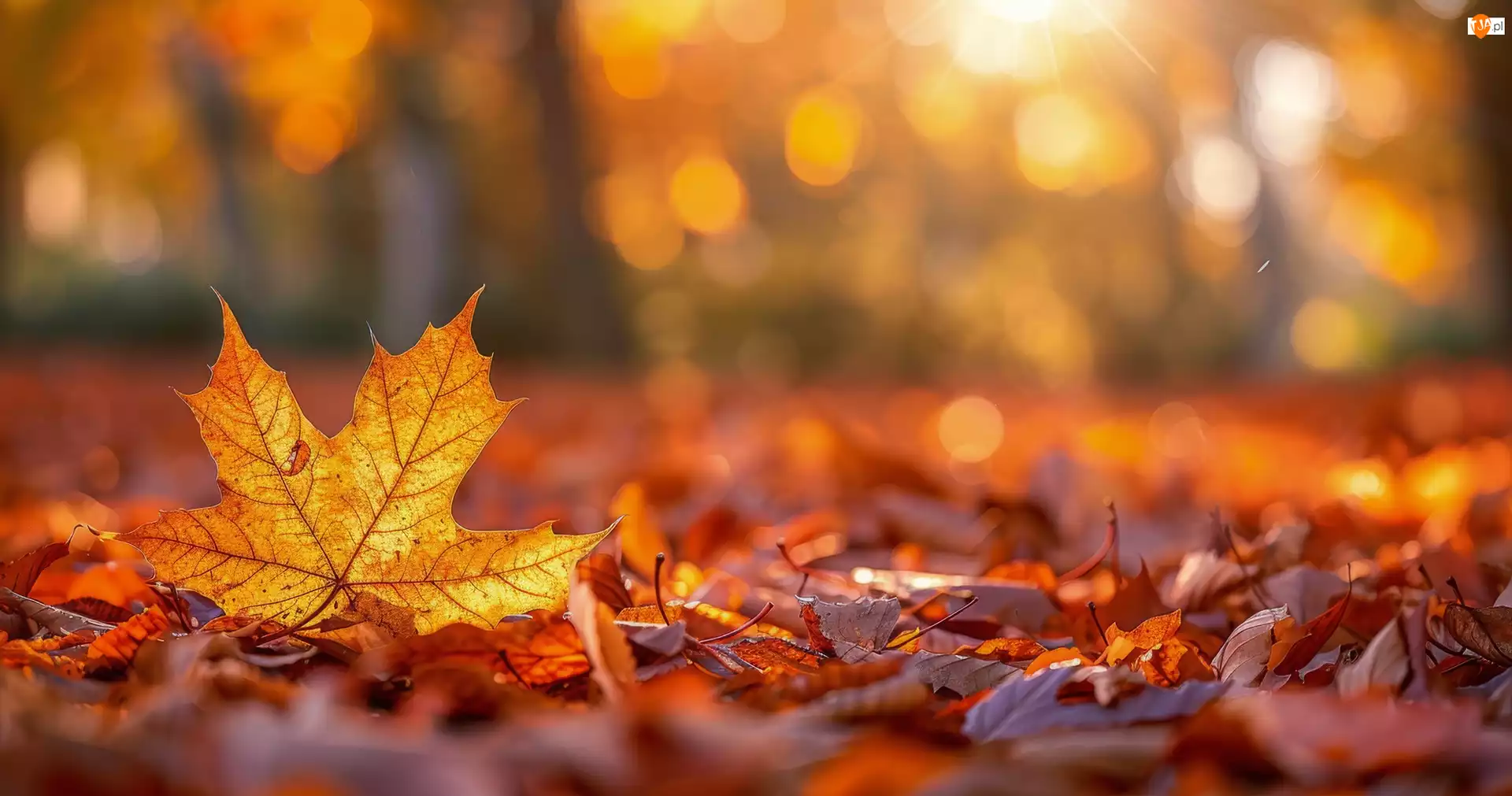 Liście, Park, Rozmyte, Grafika, Jesień, Tło
