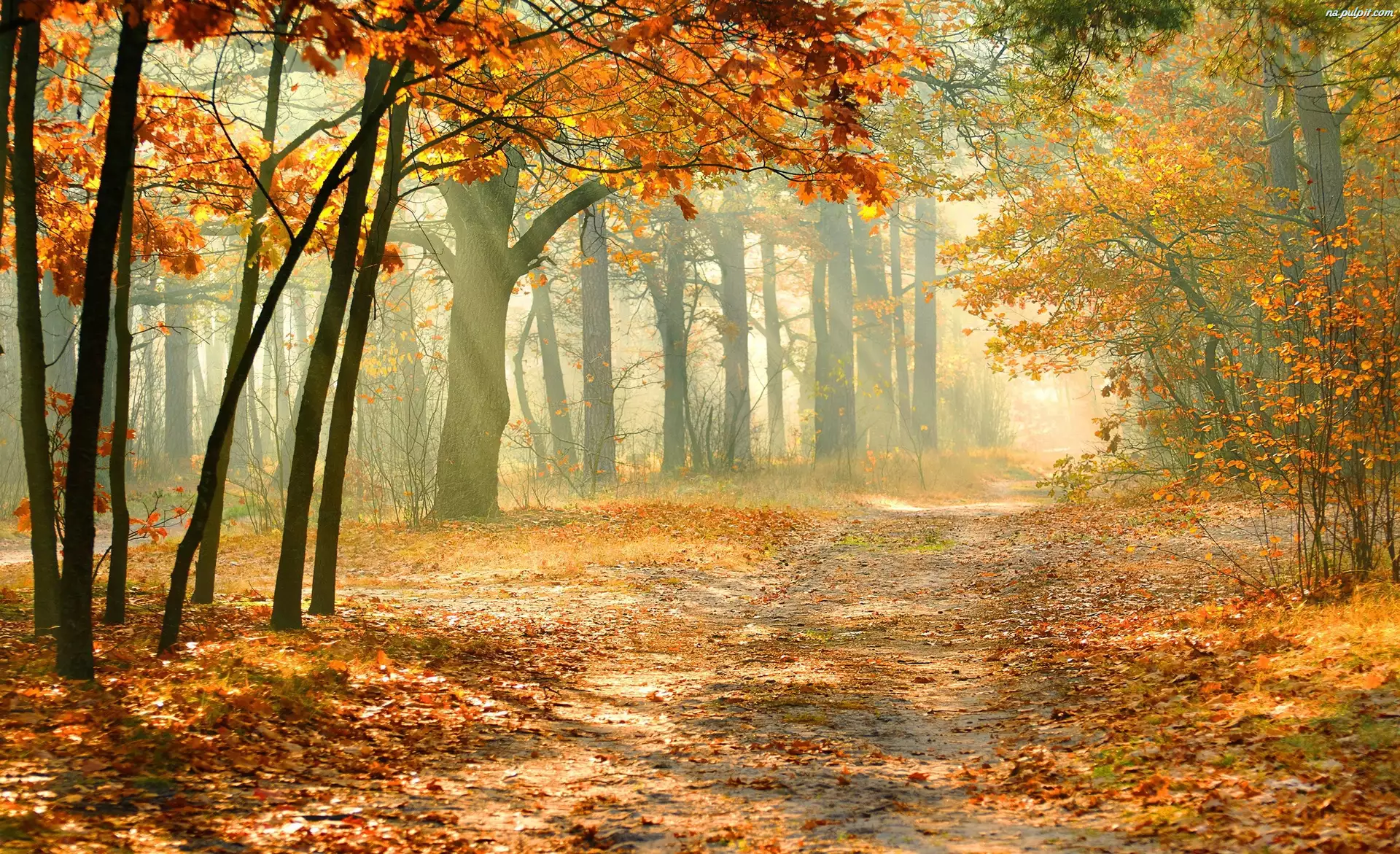 Liście, Światło, Park, Jesień, Droga, Przebijające