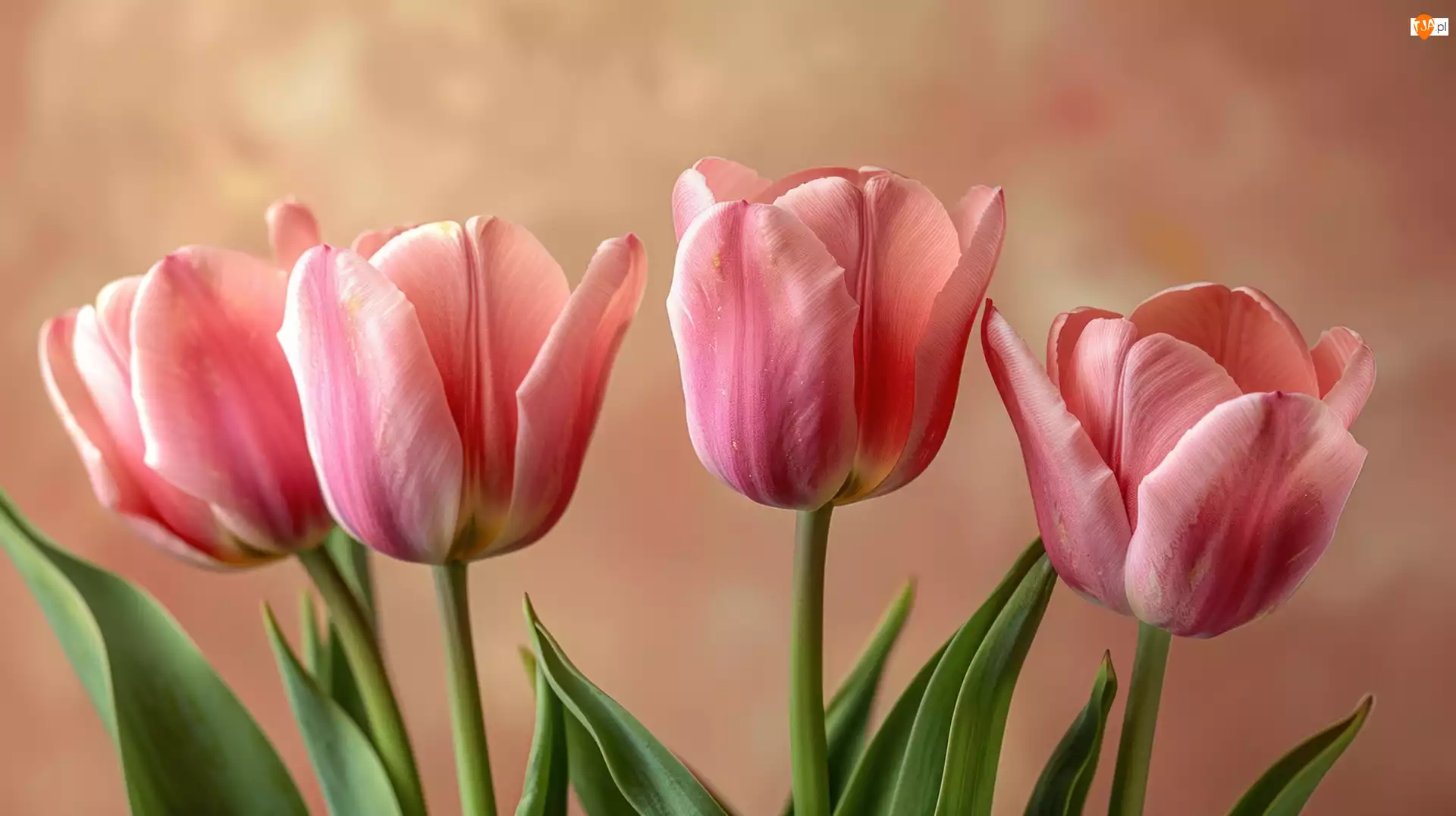 Listki, Cztery, Różowe, Tulipany