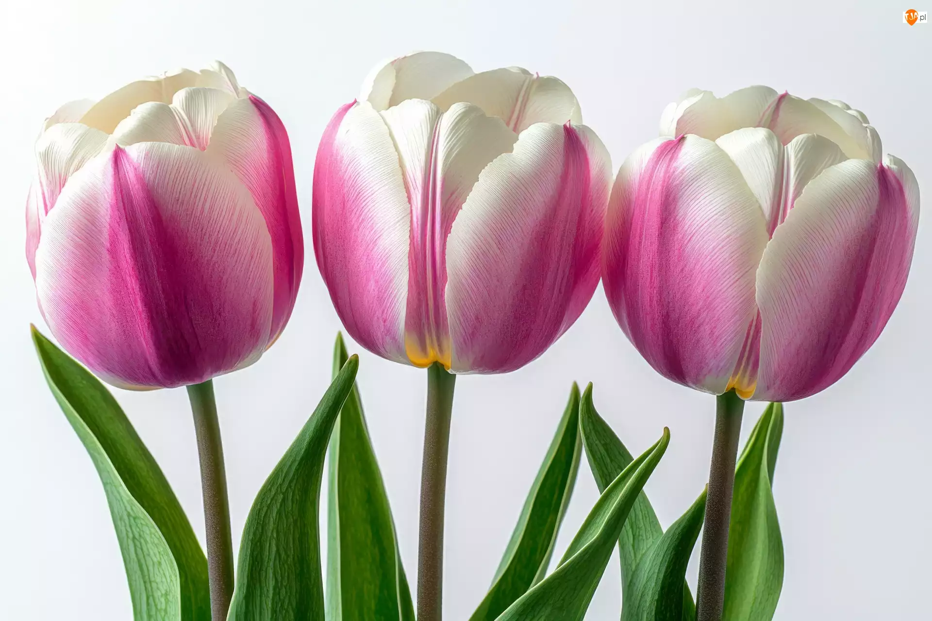 Listki, Trzy, Różowo-białe, Tulipany