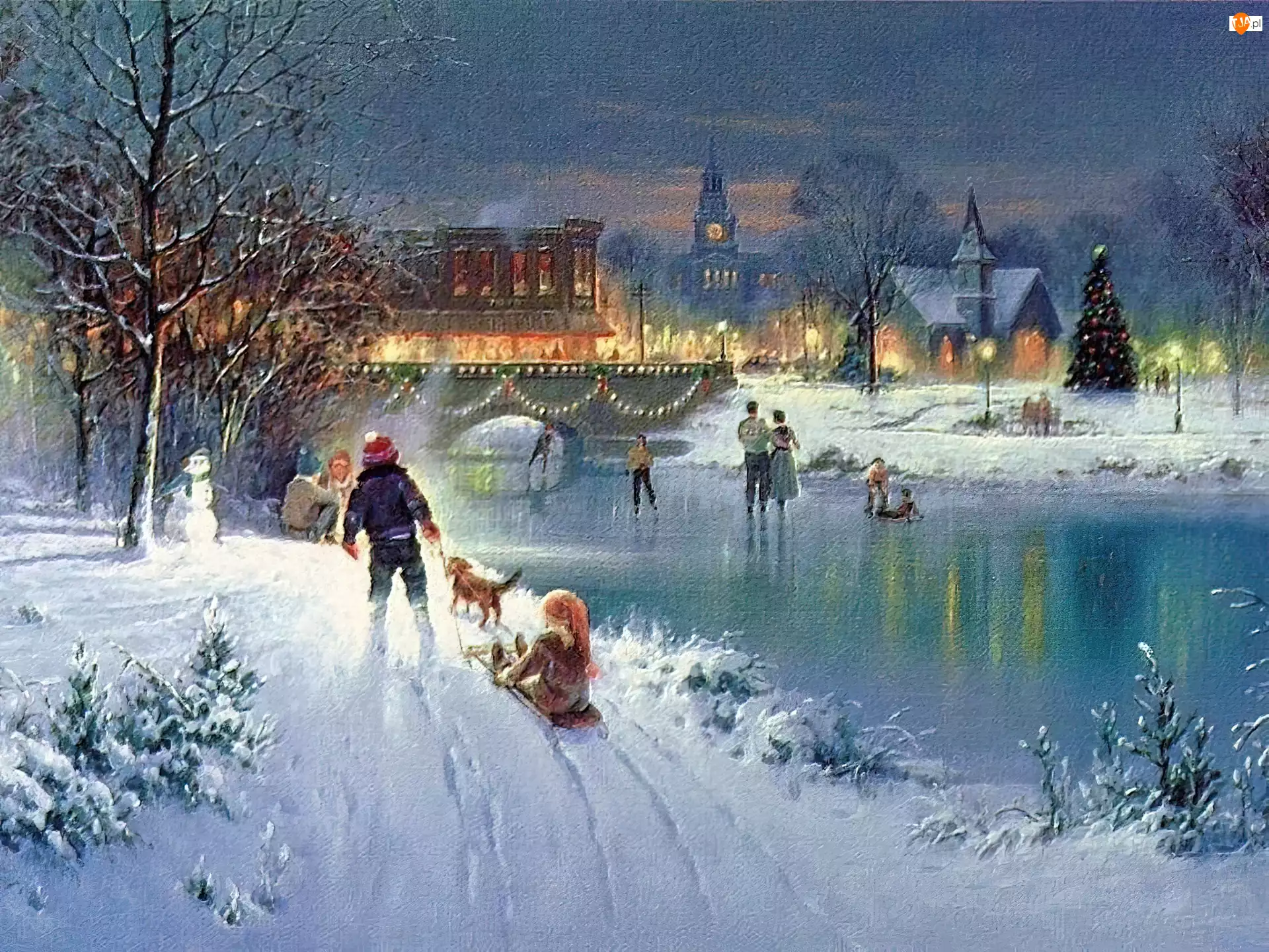 lodowisko, Boże Narodzenie, rzeka