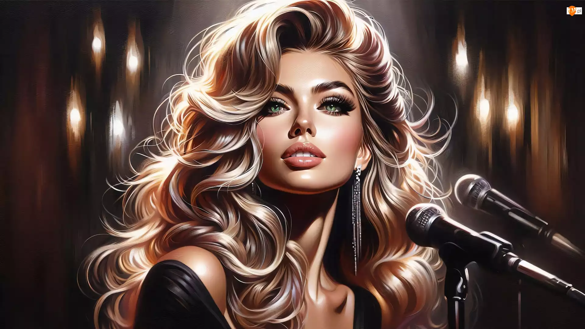 Loki, Mikrofony, Blondynka, Kobieta, Grafika