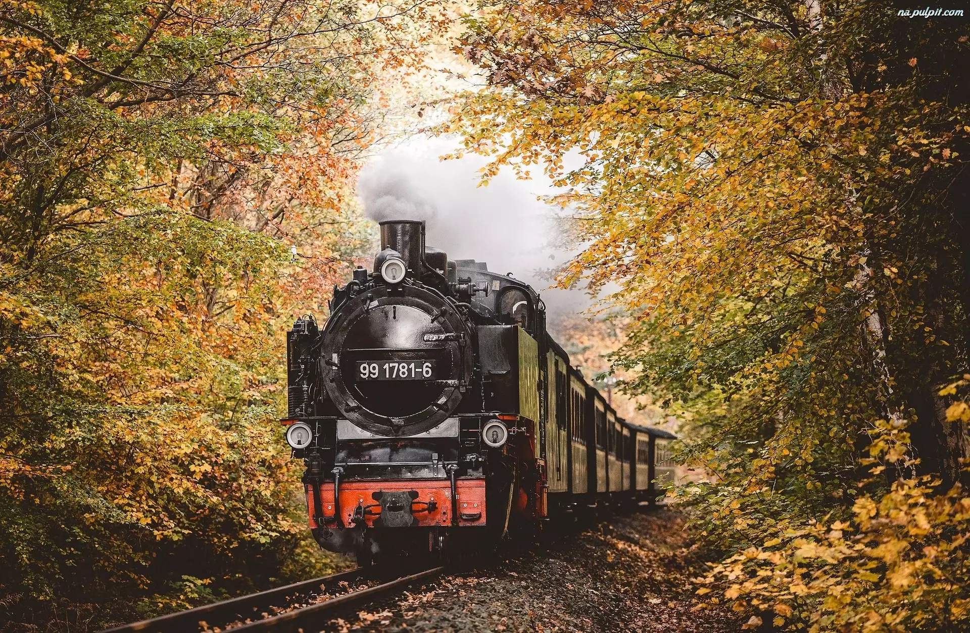 Drzewa, Pociąg, Lokomotywa parowa, Jesień