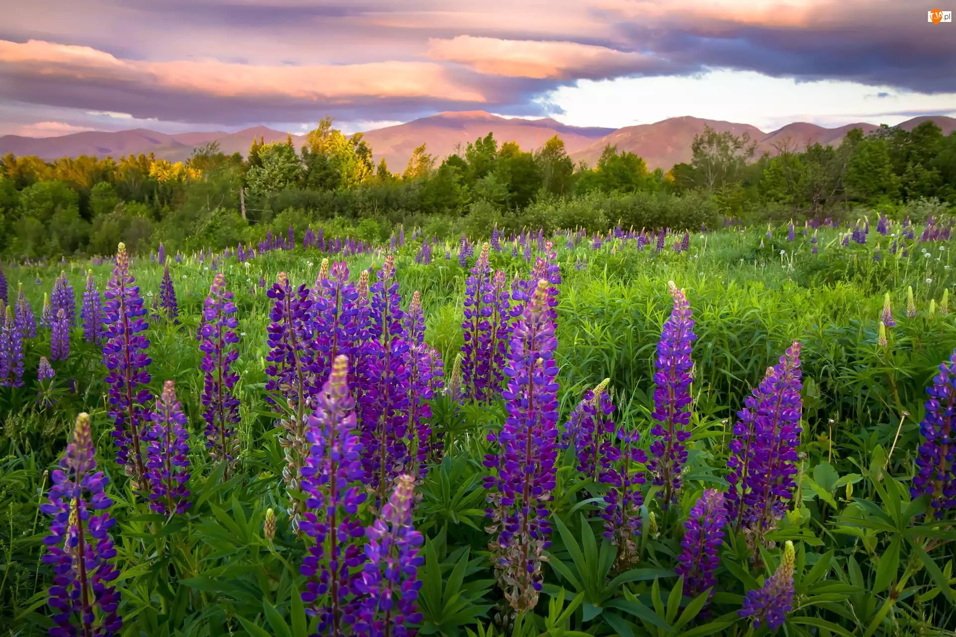 Łubin, Niebo, Góry, Drzewa