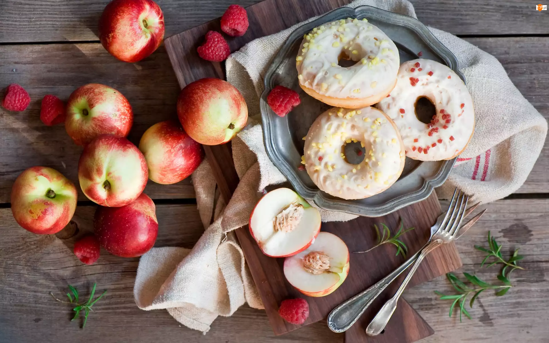 Widelce, Kompozycja, Donuty, Pączki, Nektarynki