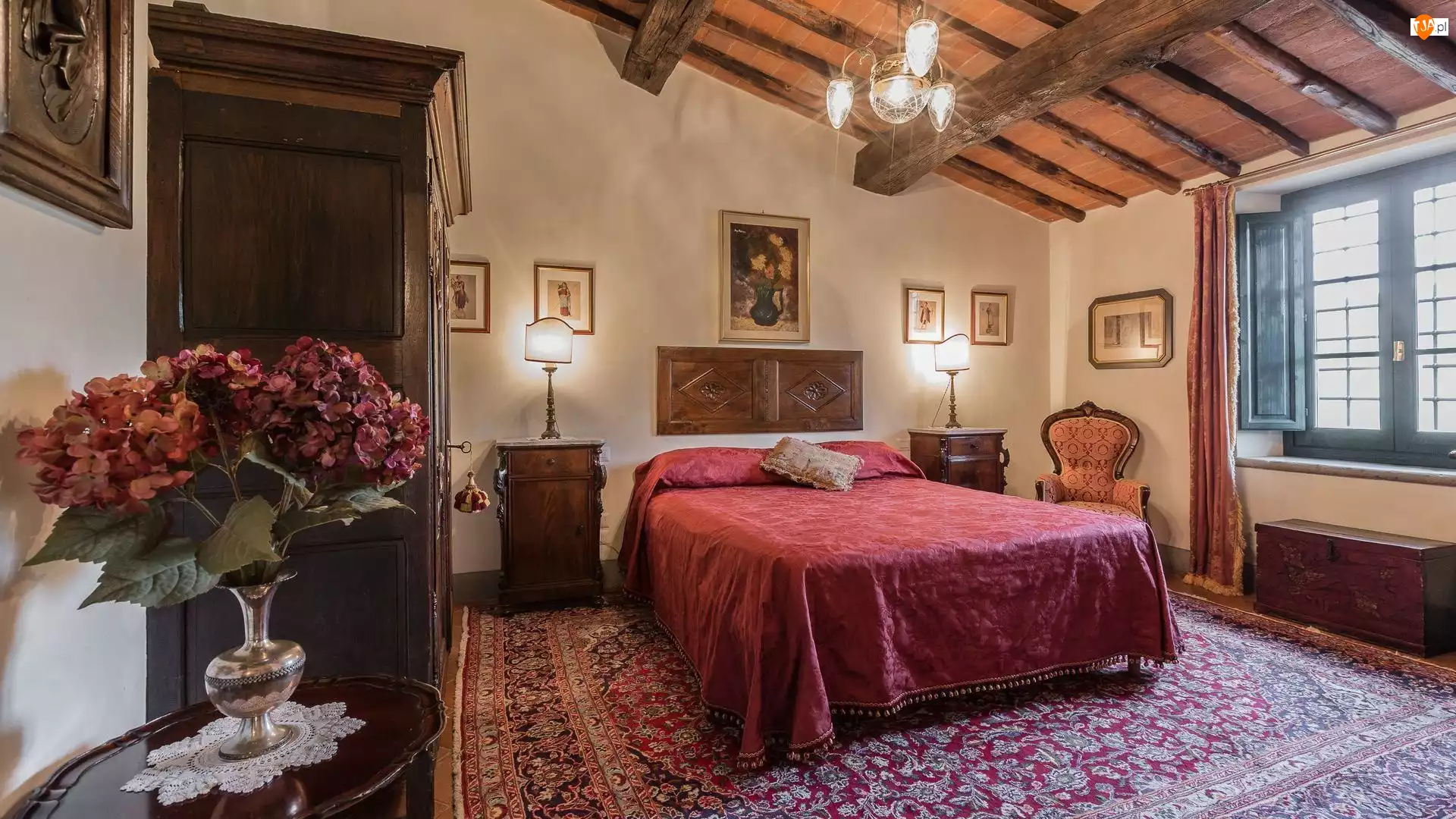 Narzuta, Lampy, Czerwona, Sypialnia, Dywan