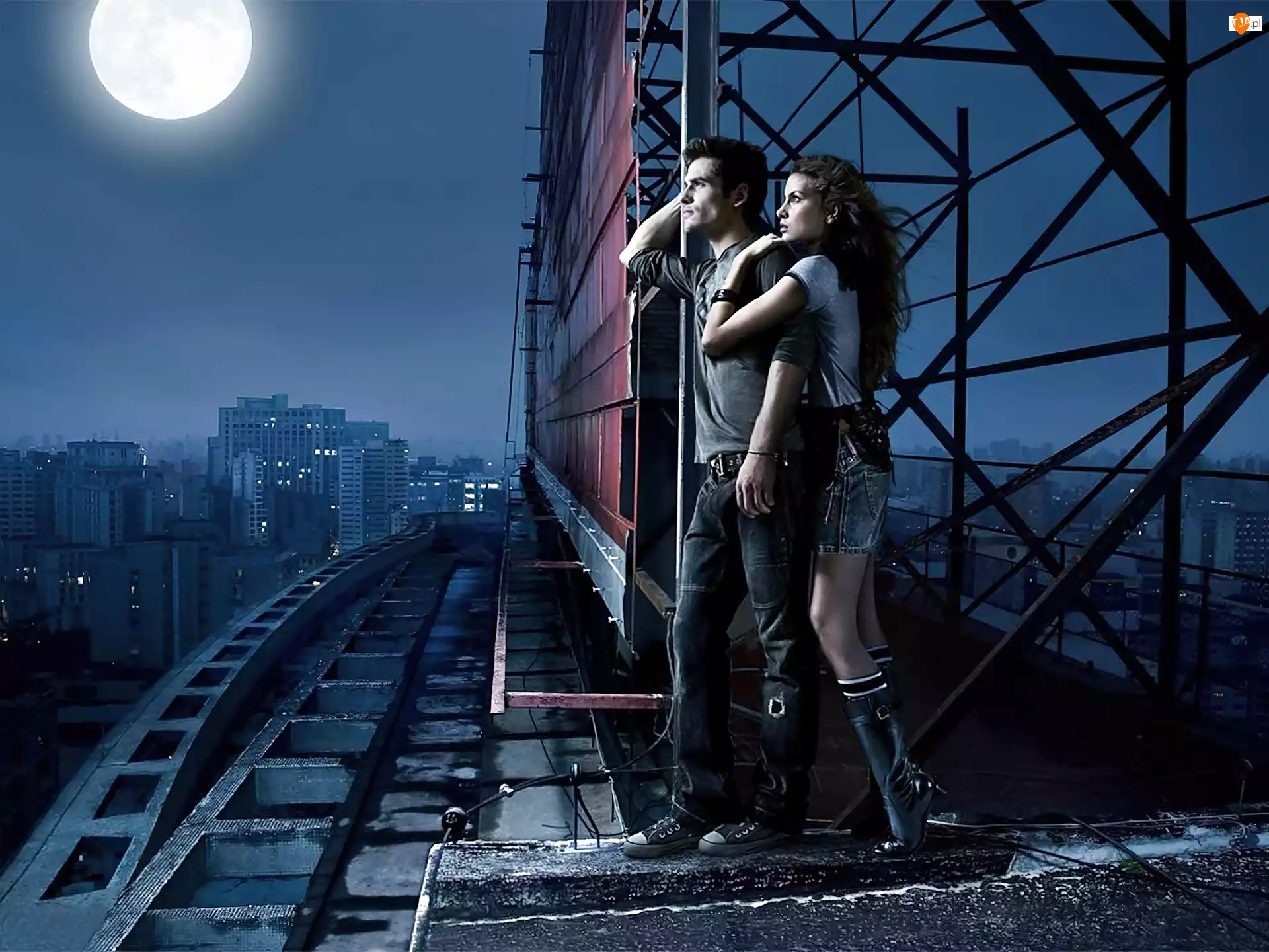 Mężczyzna, Miasta, Kobieta, Księżyc, Panorama