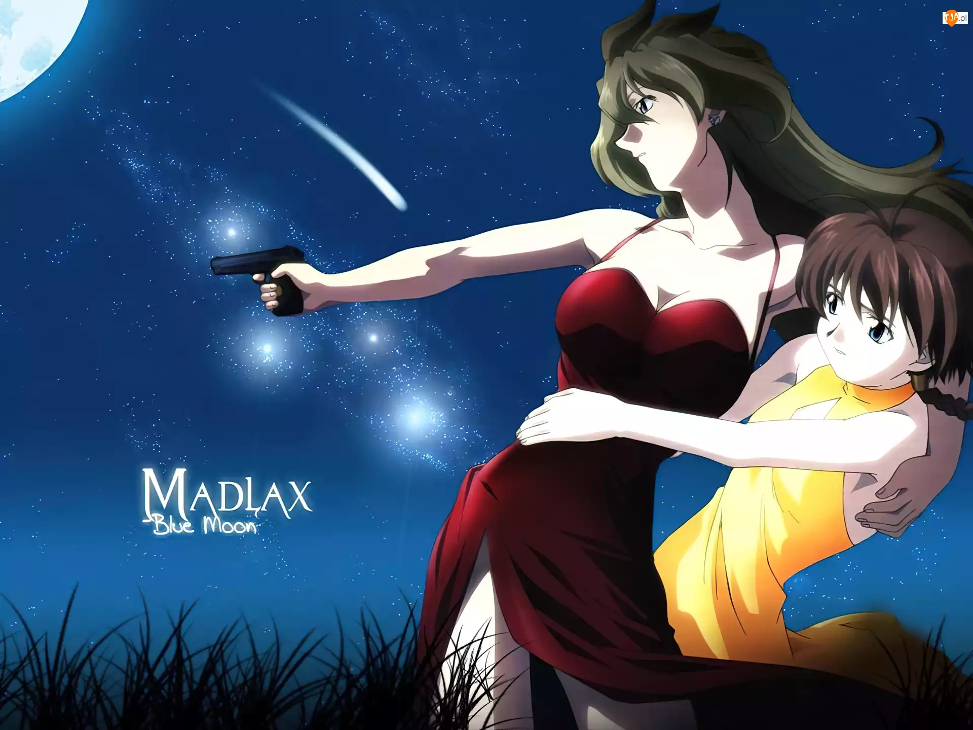 Madlax, księżyc, kobieta, pistolet