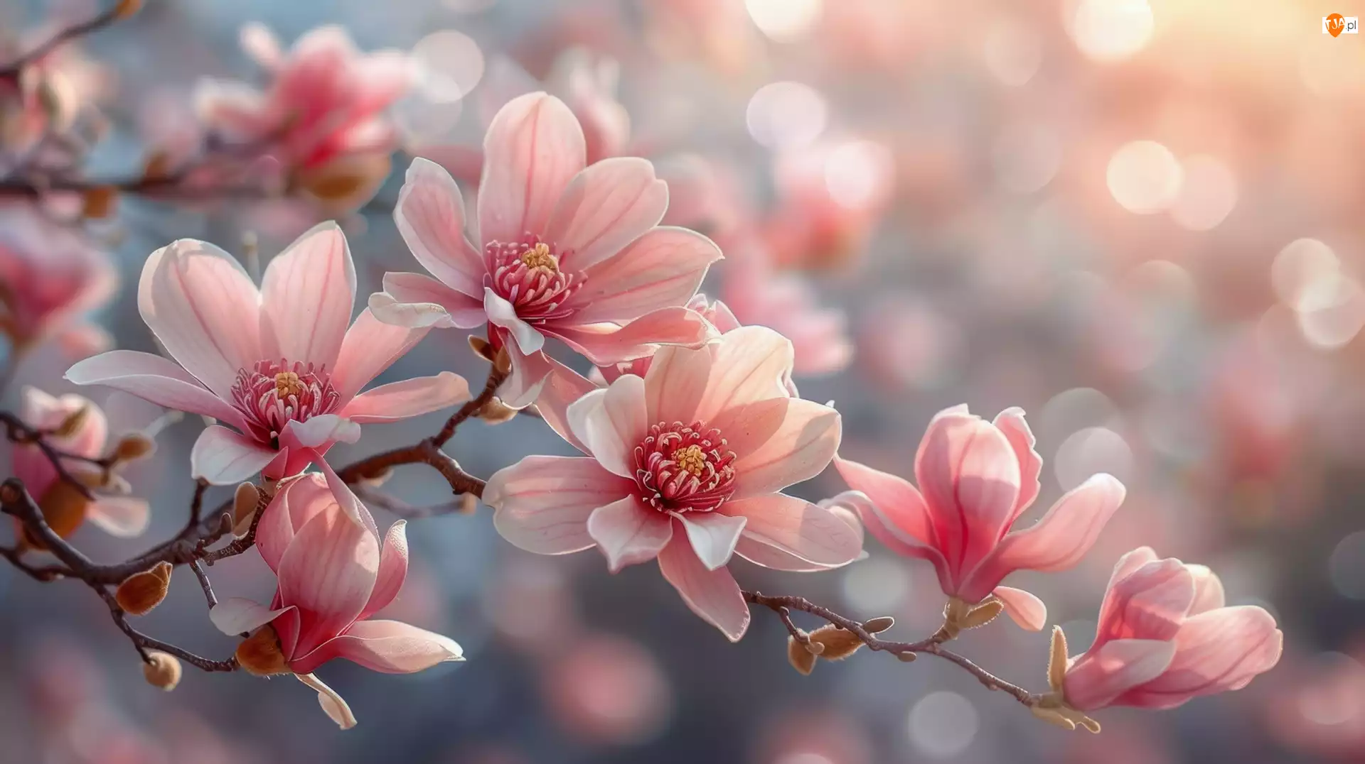 Magnolia, Kwiaty, Gałązki, Kwitnące, Różowe