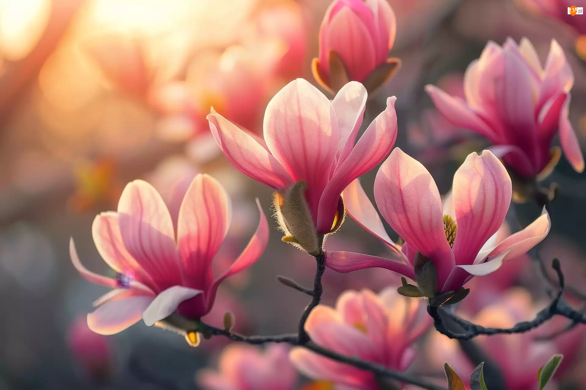 Magnolia, Różowe, Rozwinięte, Kwiaty