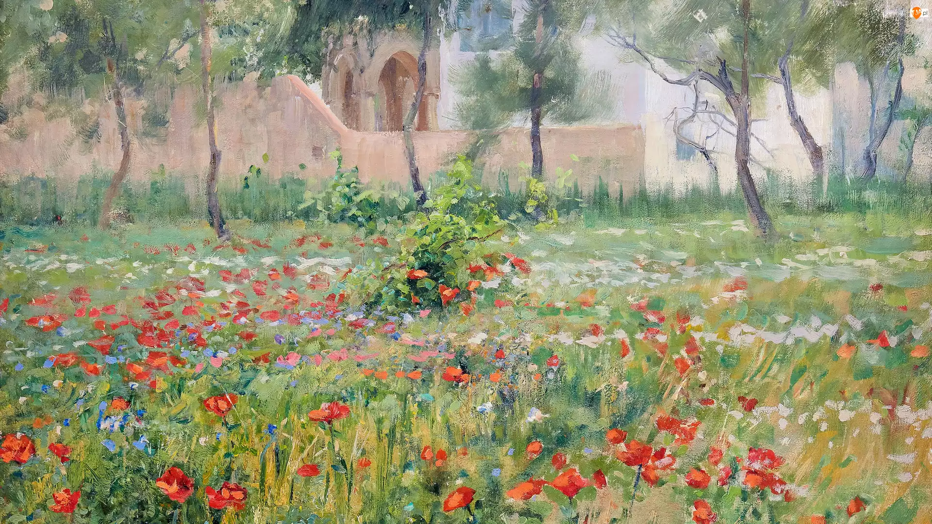 Maki, Chabry, Anshelm Schultzberg, Łąka, Obraz, Malarstwo, Drzewa