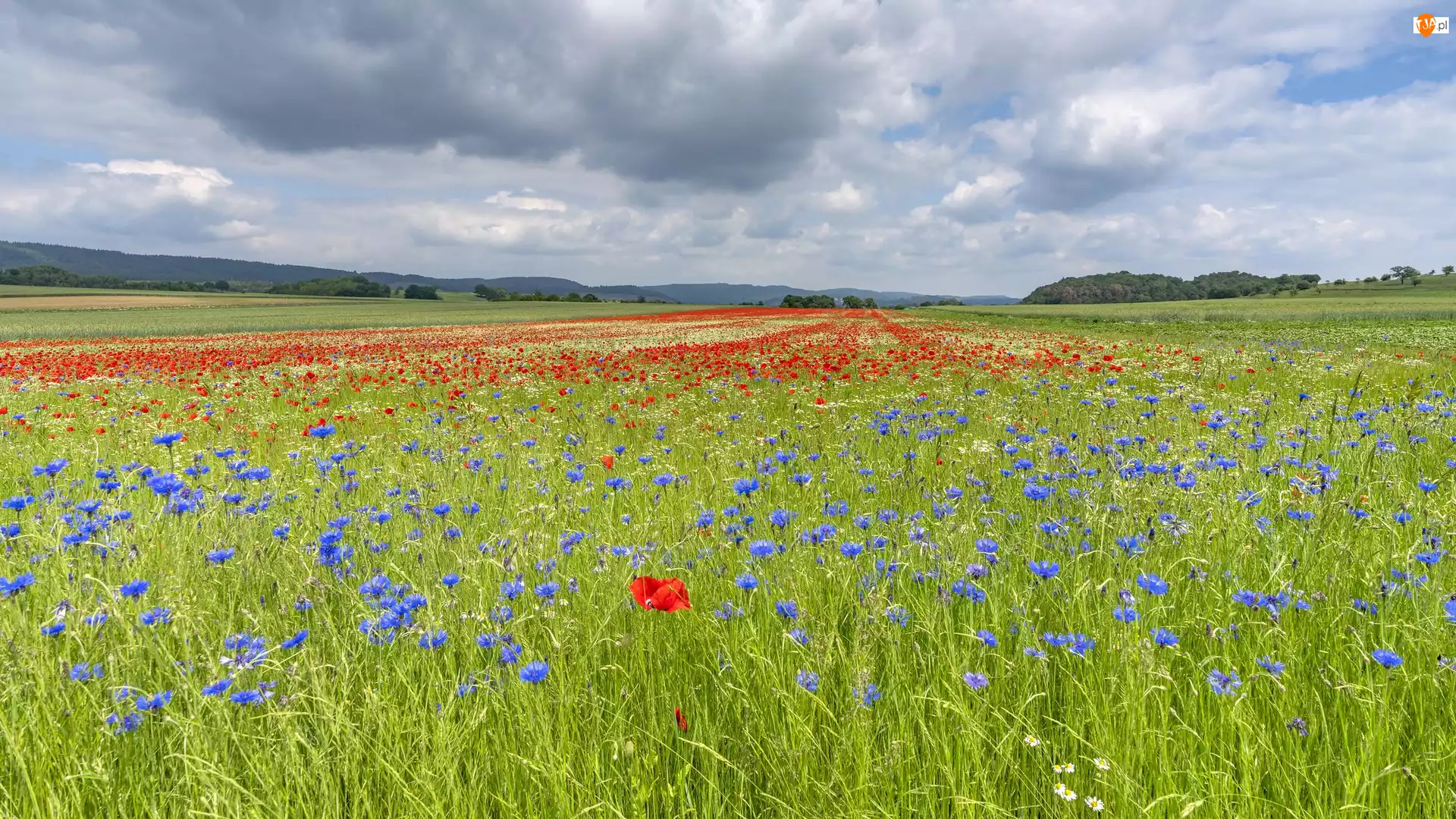 Maki, Pole, Trawa, Łąka, Chabry, Drzewa